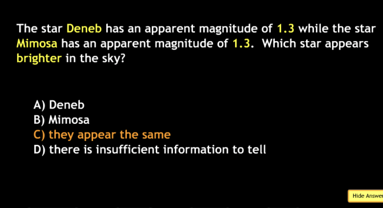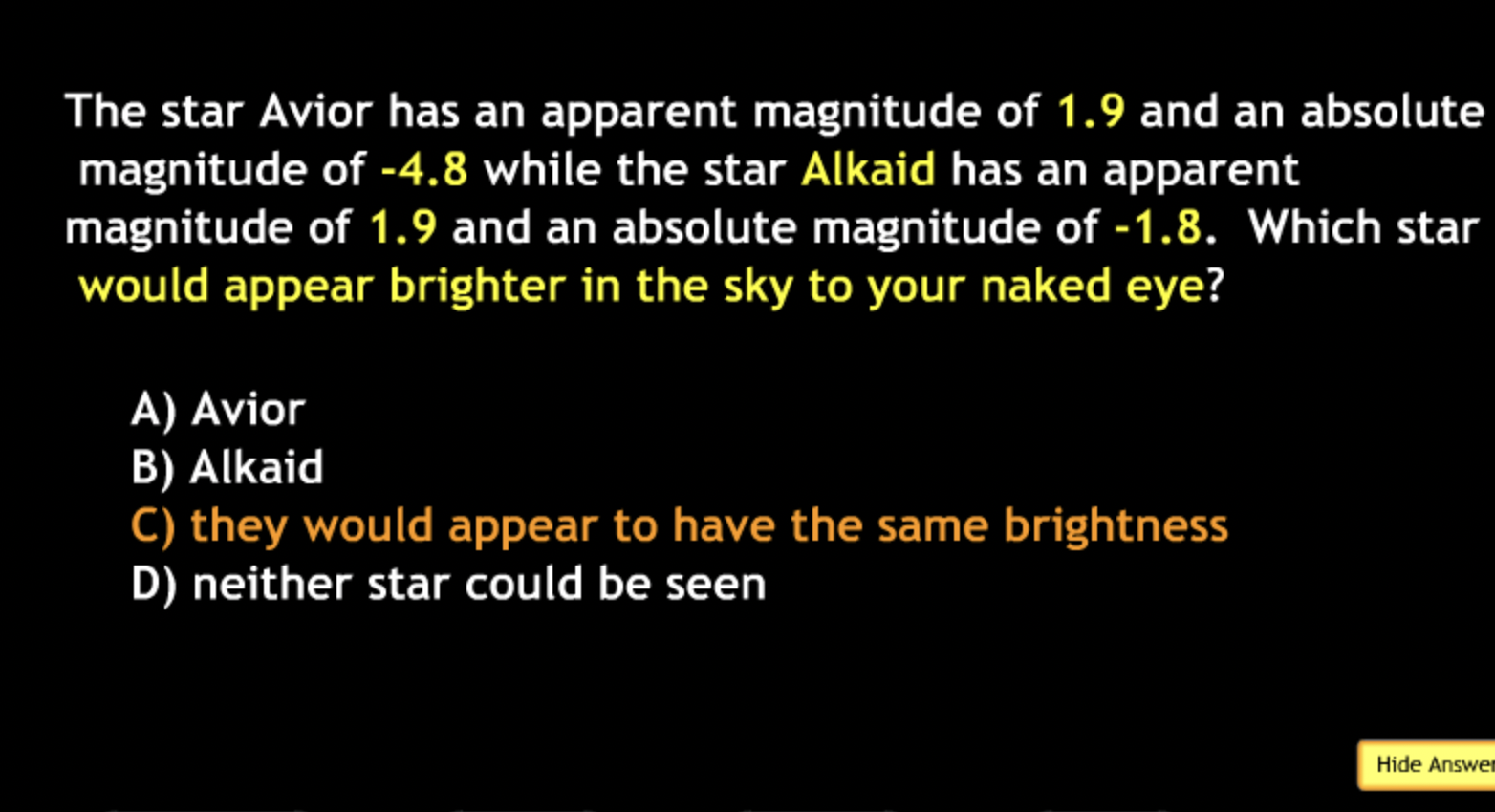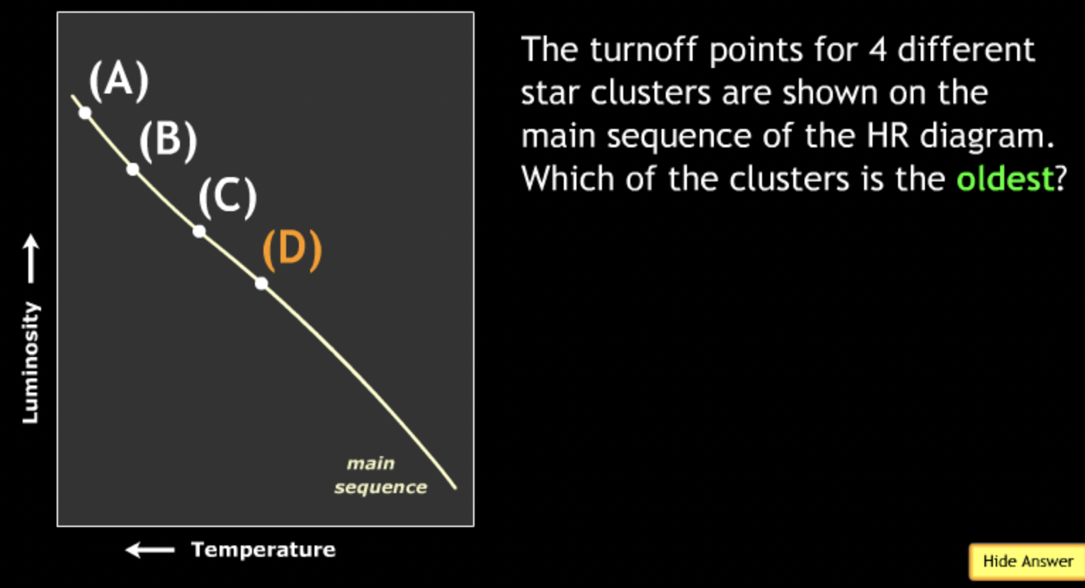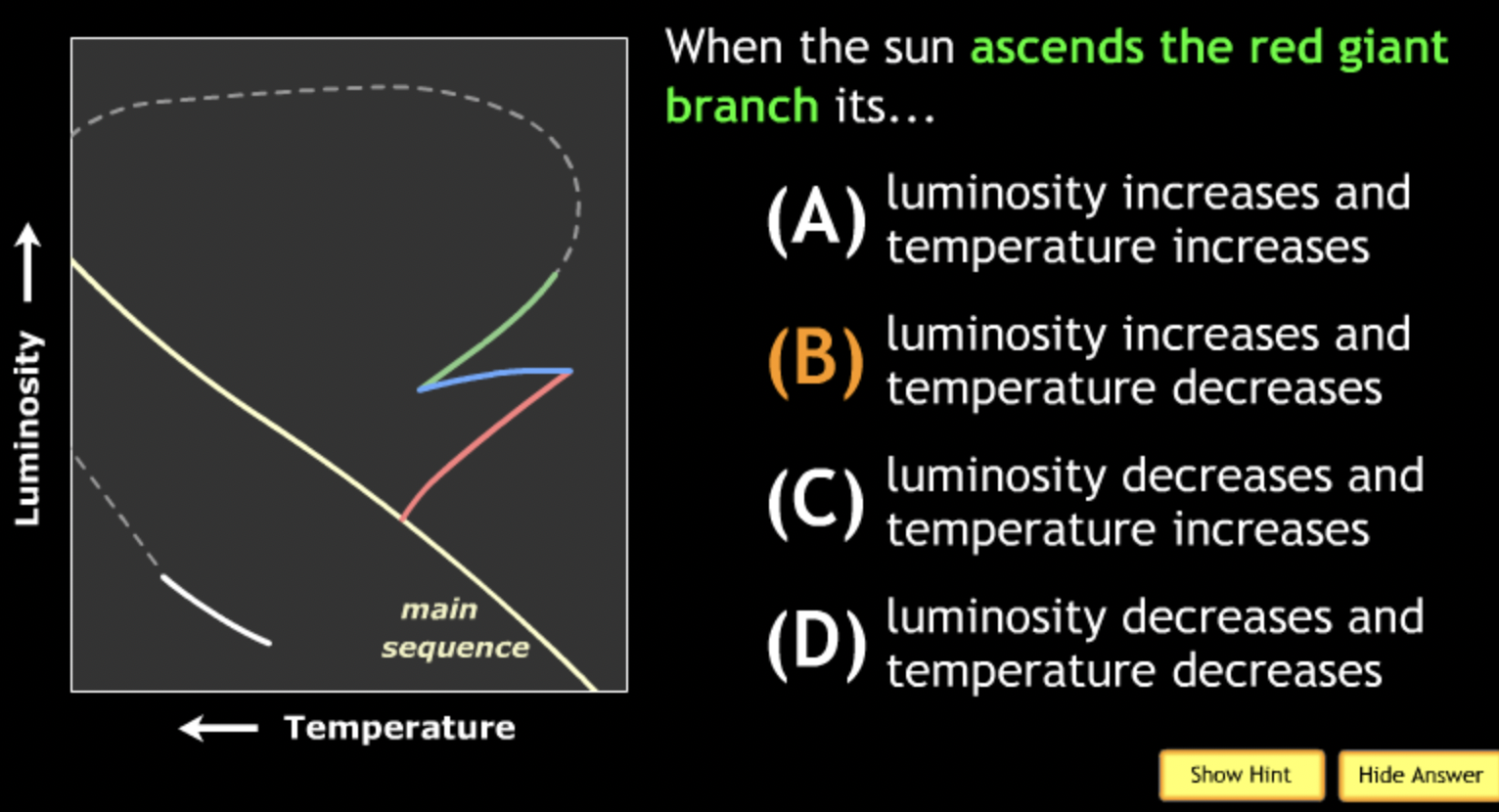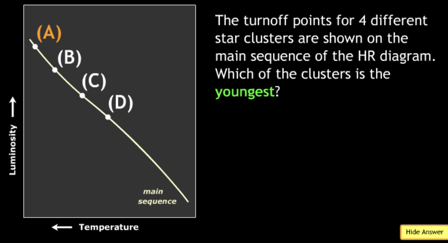 The brightest stars we see with our eyes are best described on the HR Diagram as… high luminosity stars.