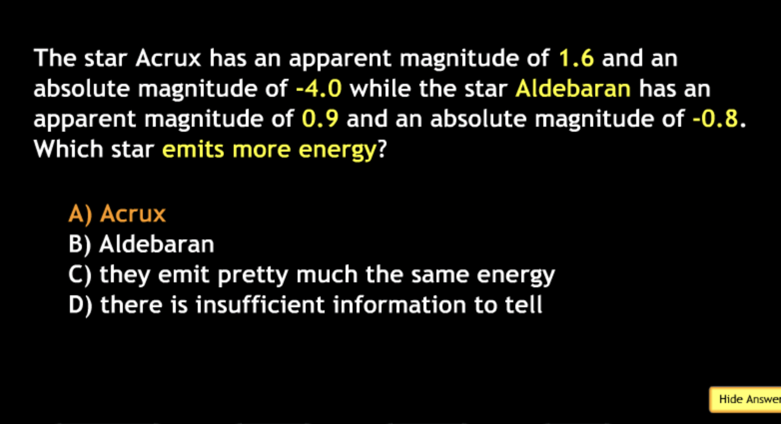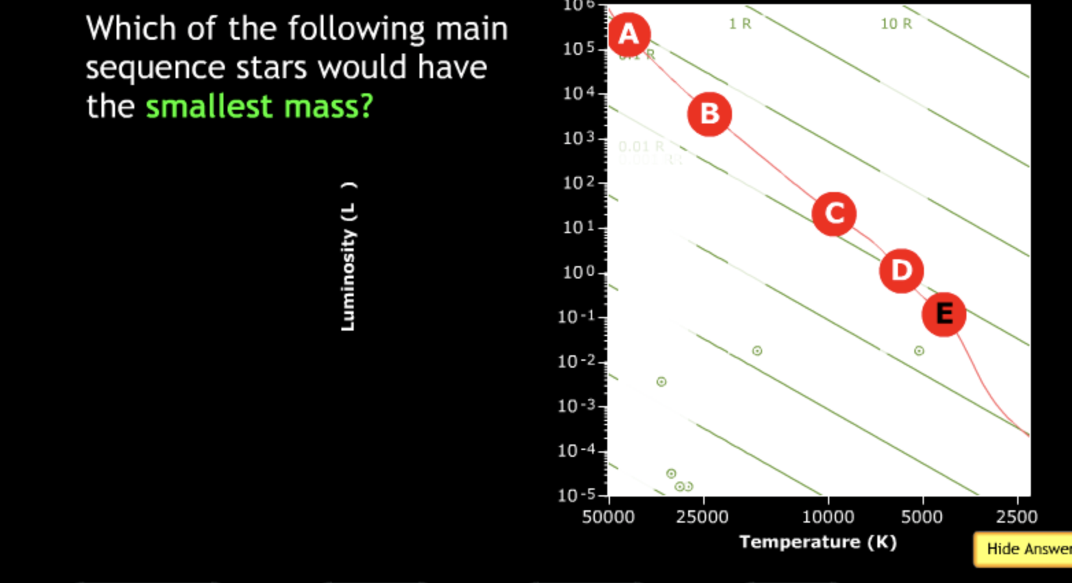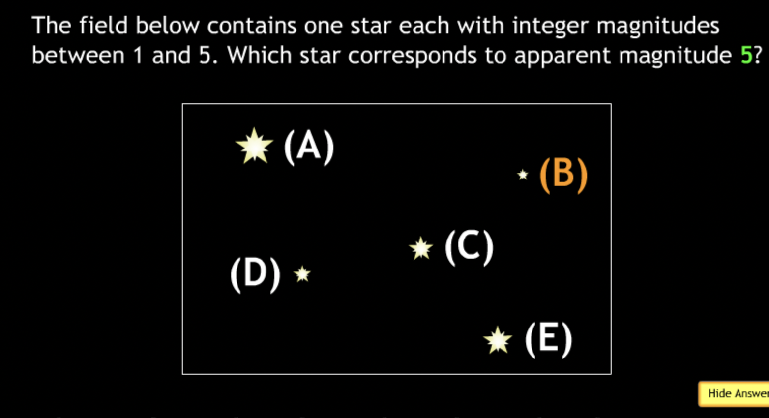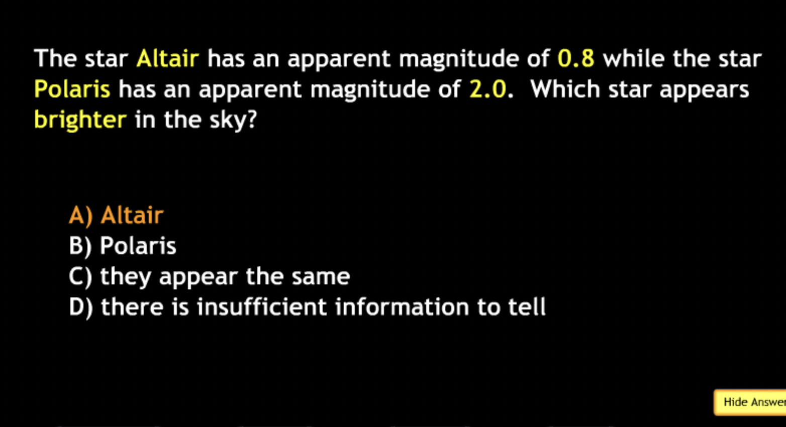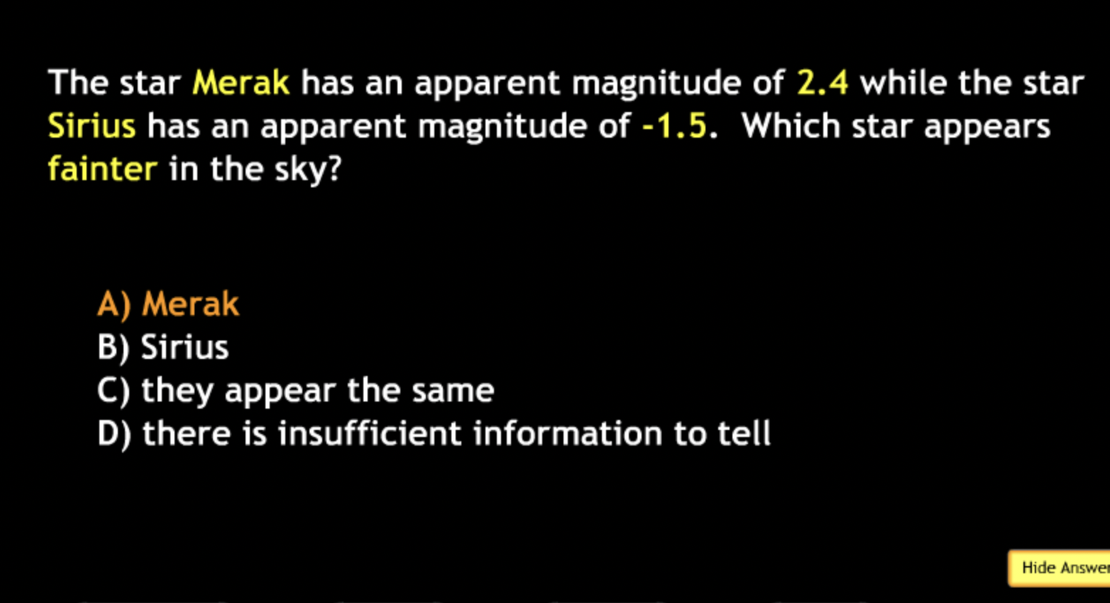 The brightest stars we see with our eyes are best described on the HR Diagram as… high luminosity stars.