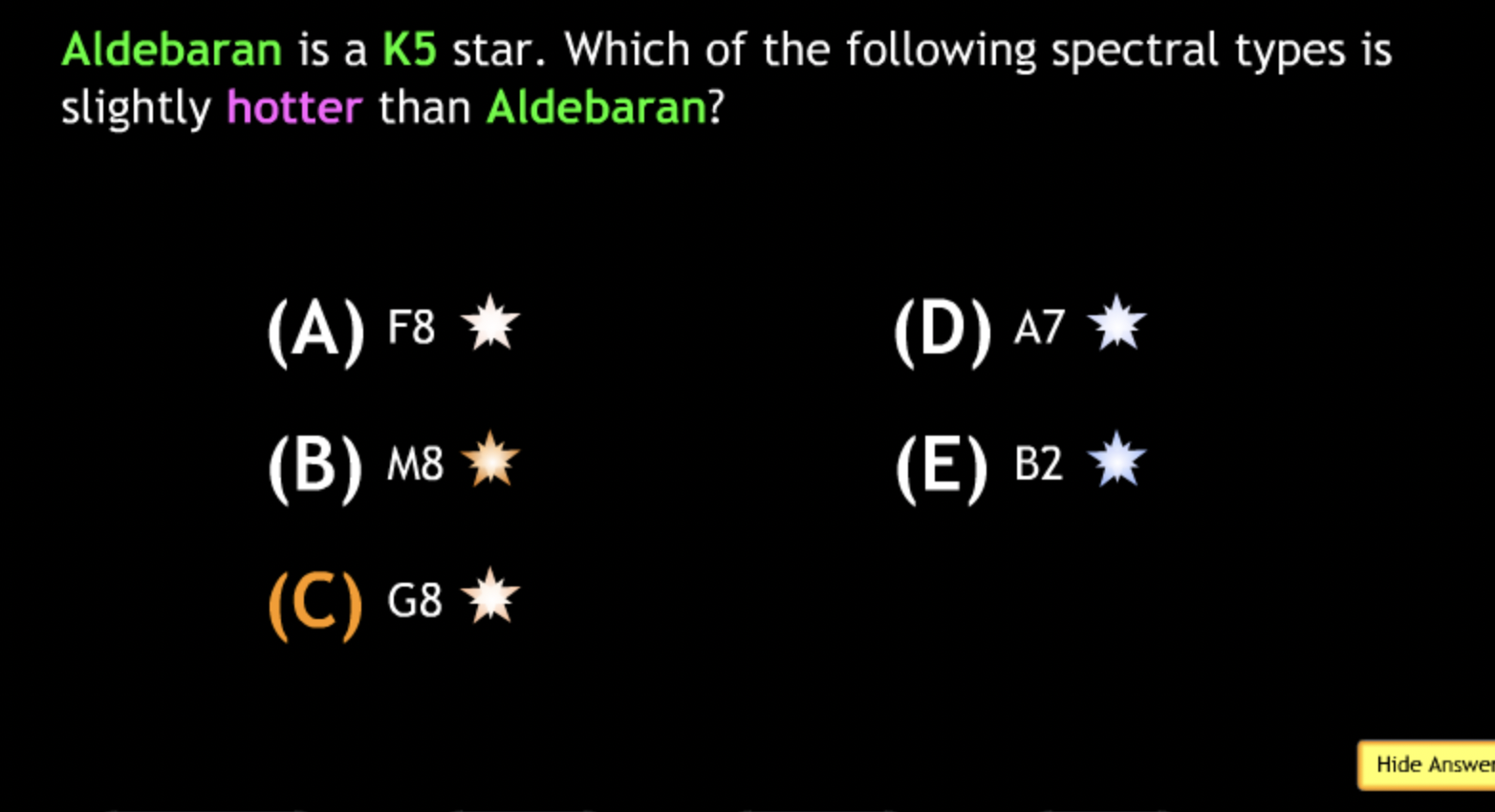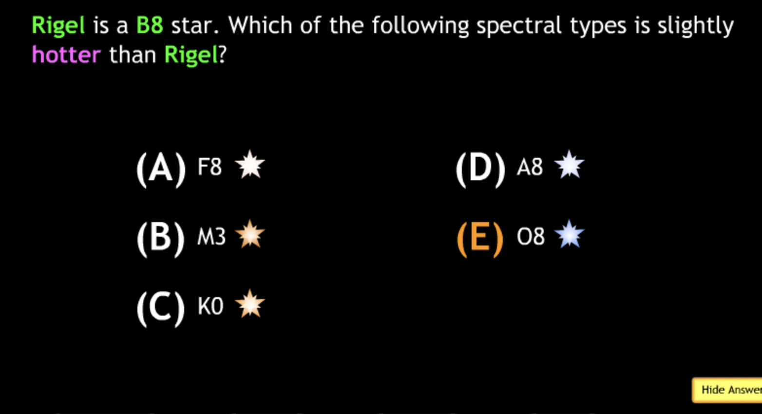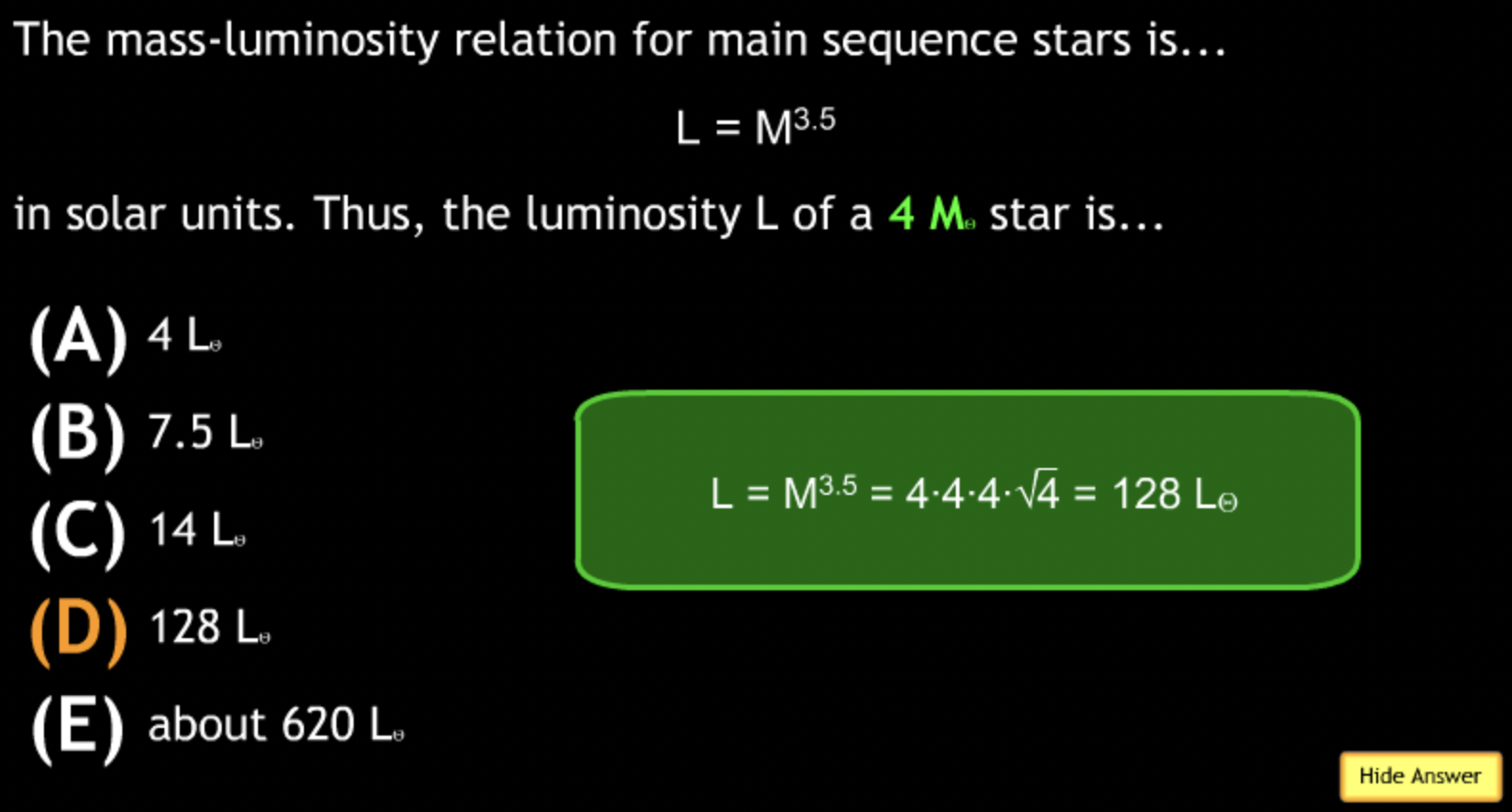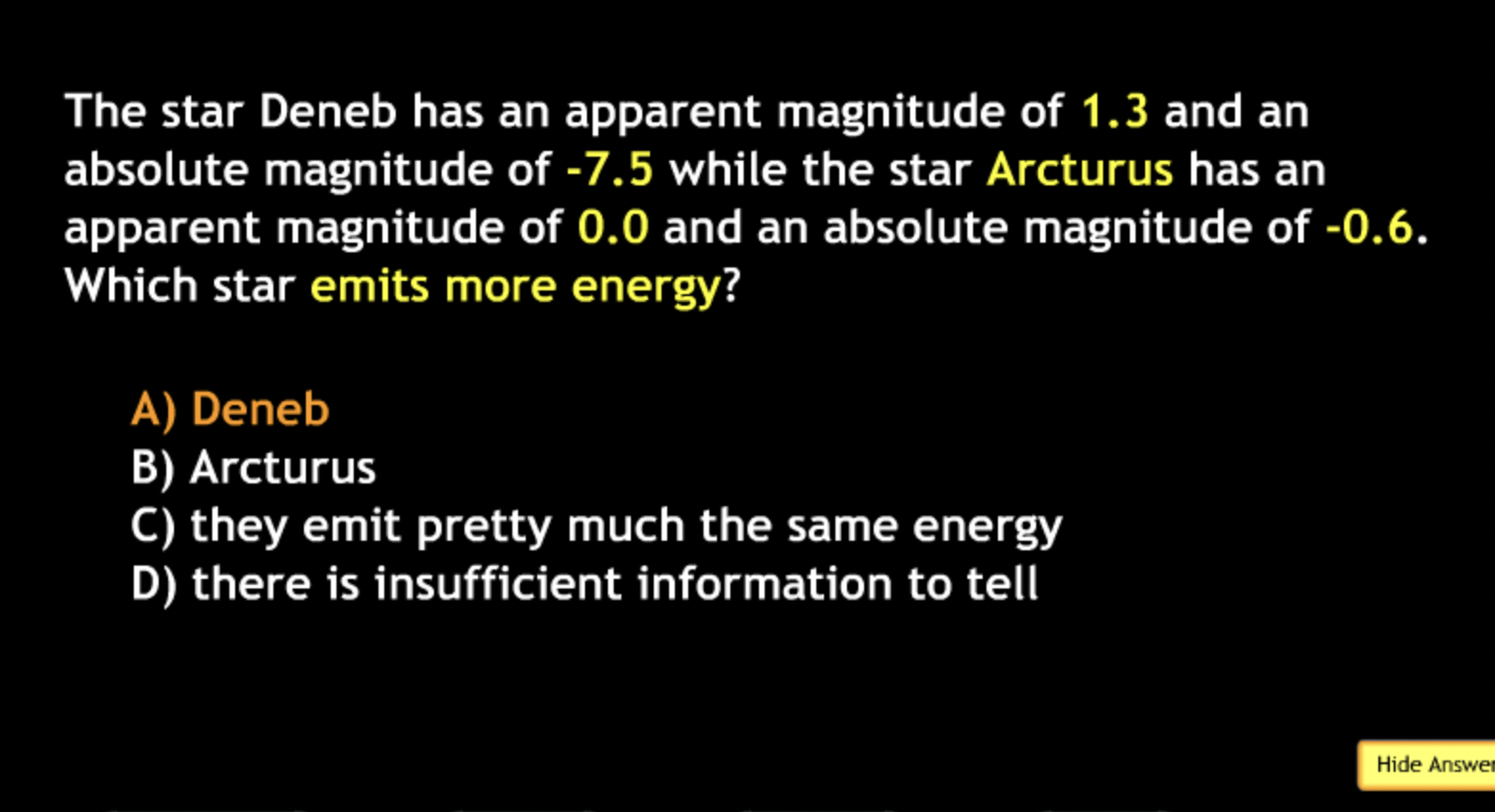 The brightest stars we see with our eyes are best described on the HR Diagram as… high luminosity stars.