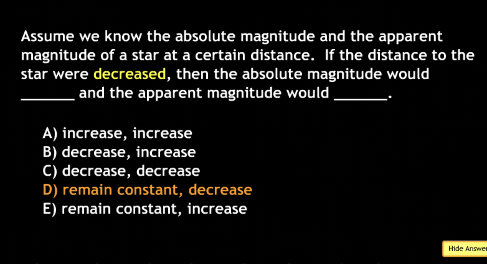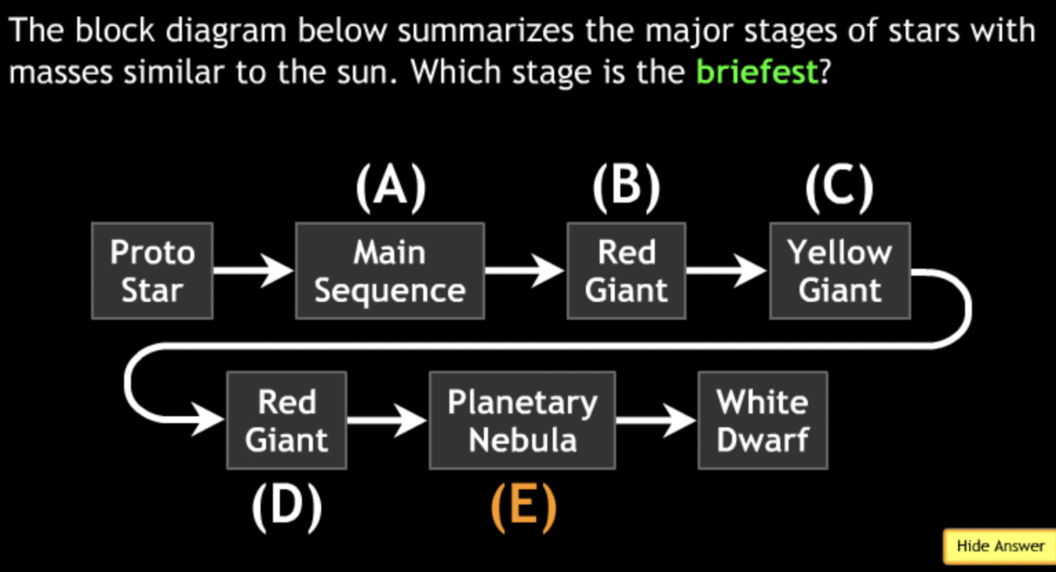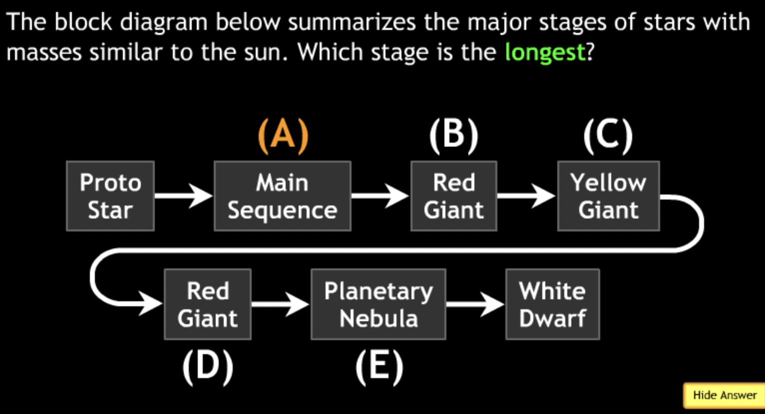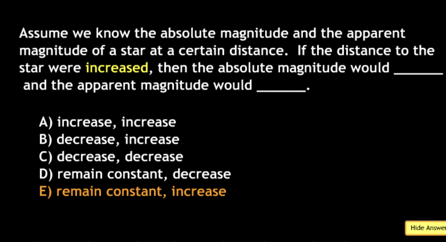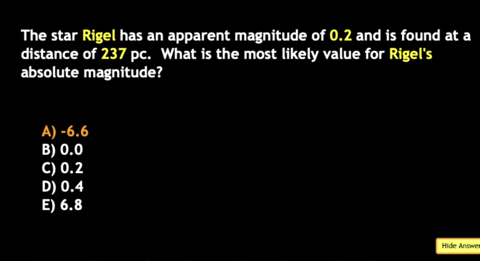 The brightest stars we see with our eyes are best described on the HR Diagram as… high luminosity stars.