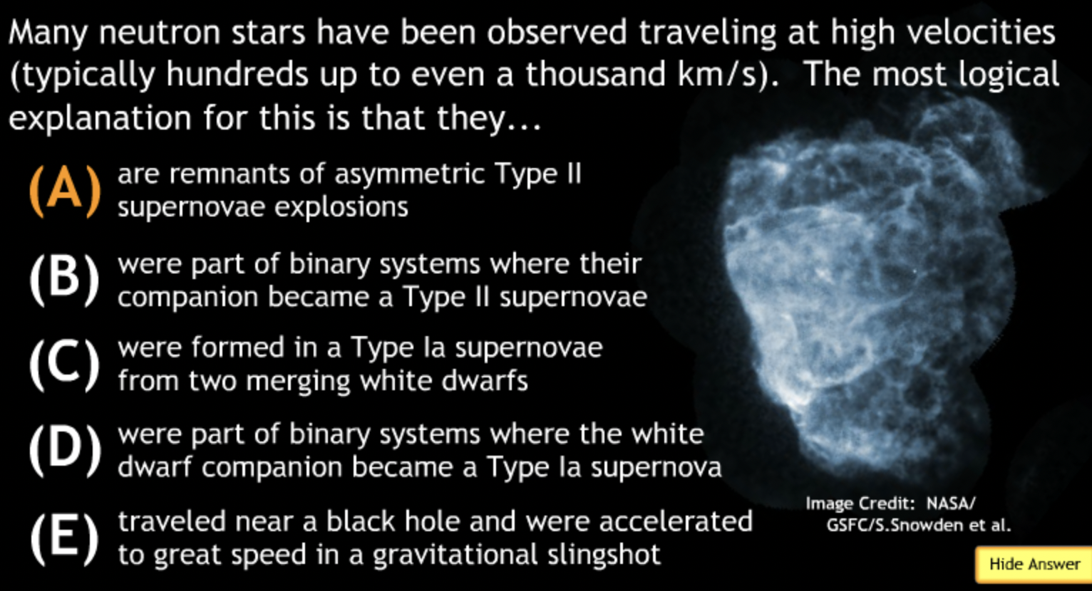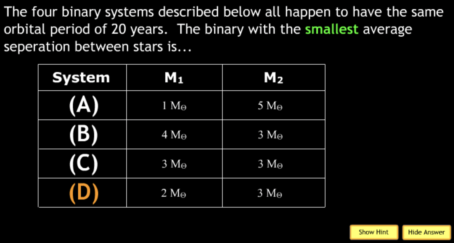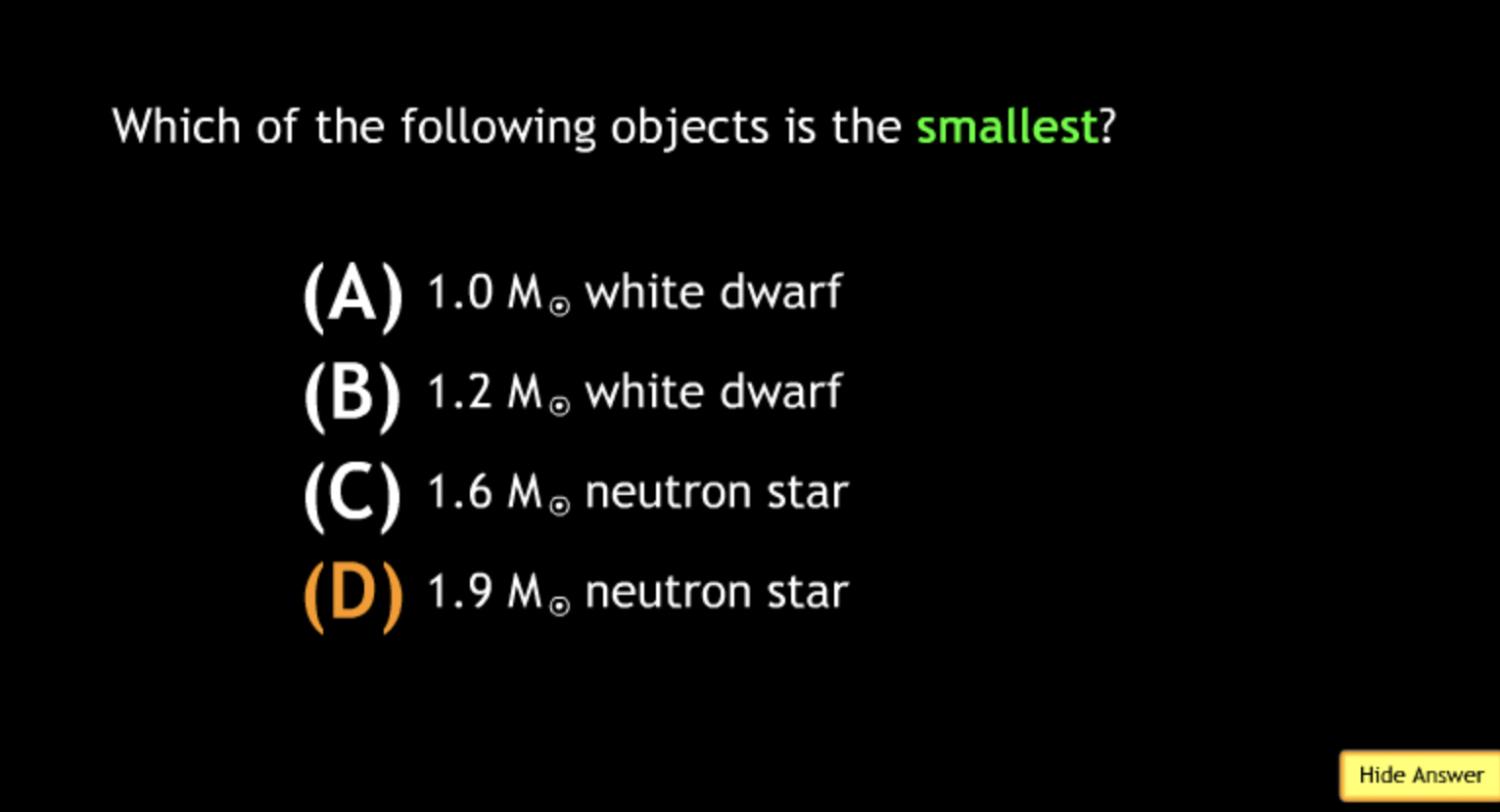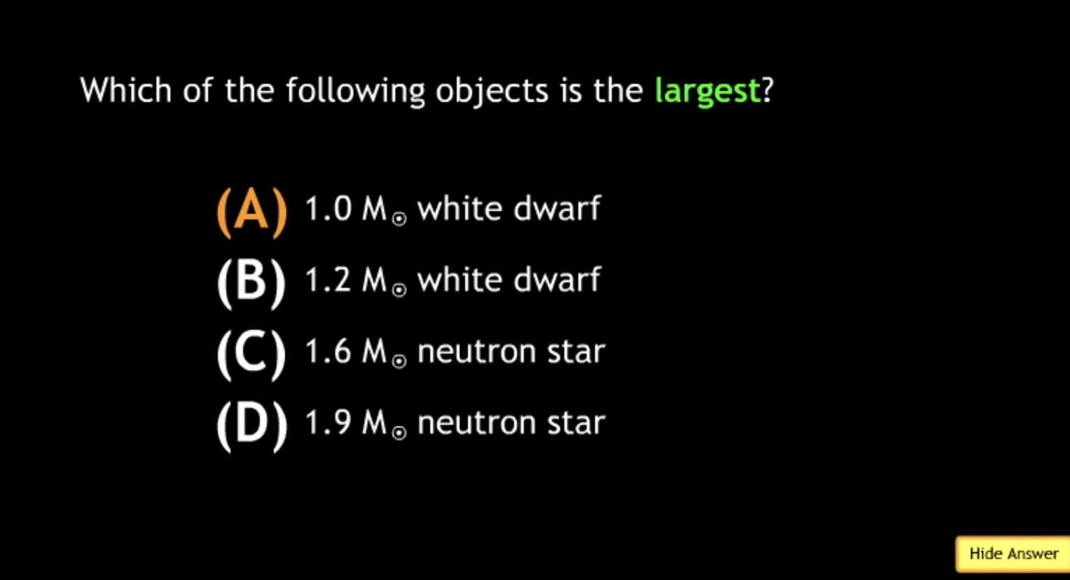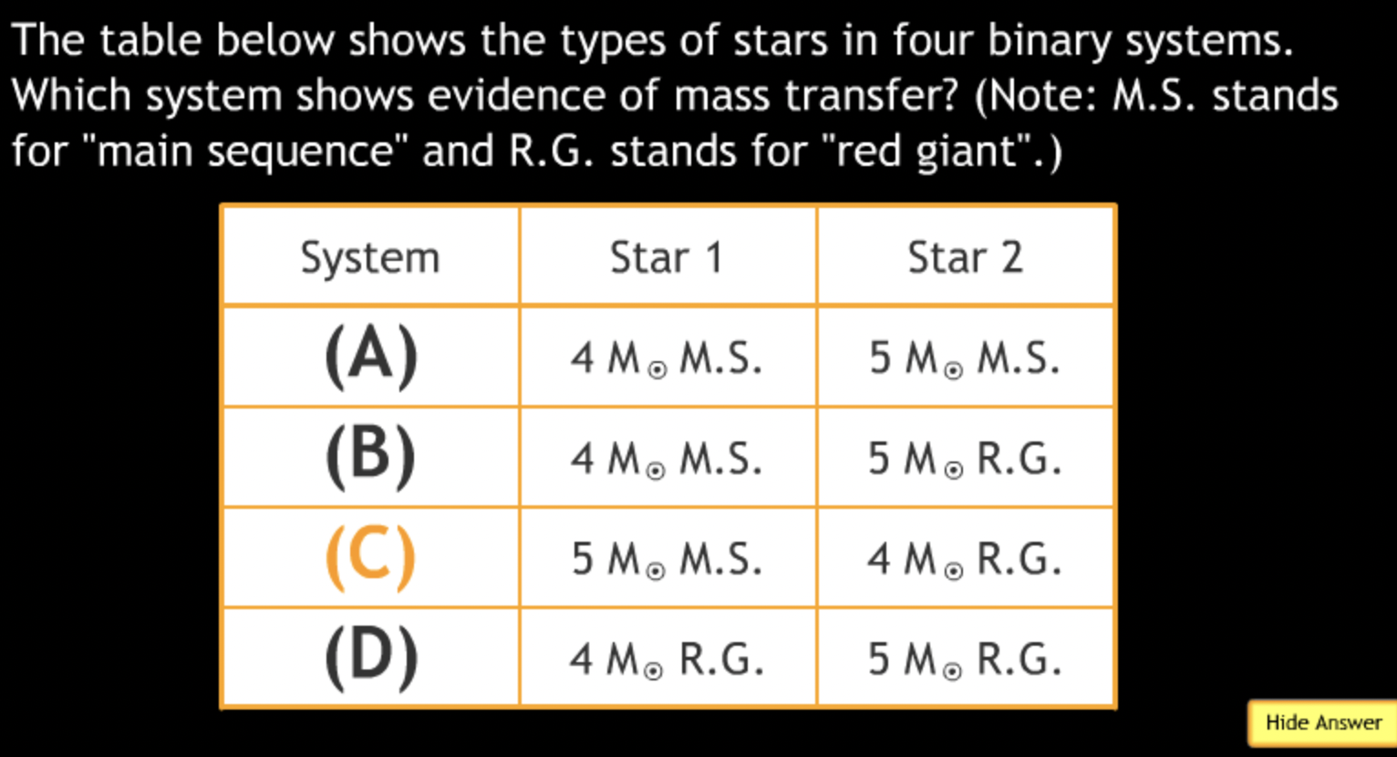 Imagine a close binary system consisting a 1.3 M star and a 1.0 M star, Which of the following scenarios is not possible for the ultimate outcome of the system? → a neutron star and white dwarf