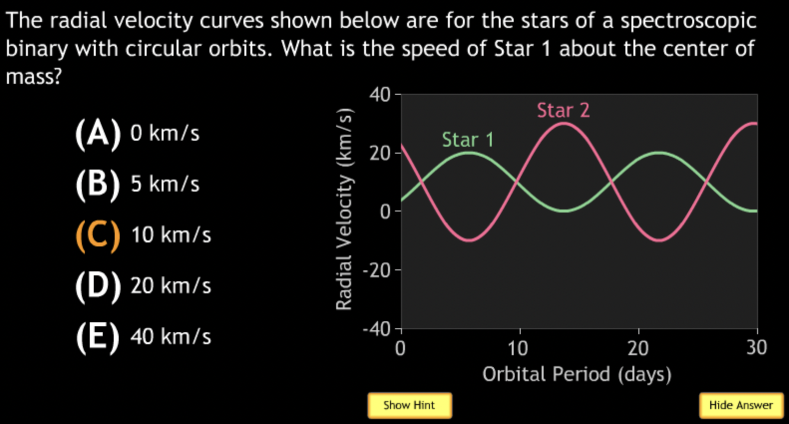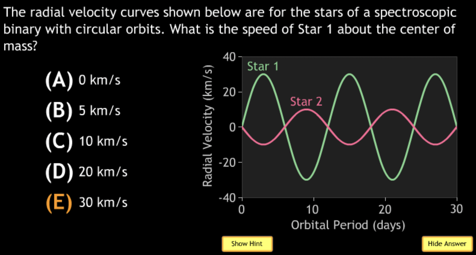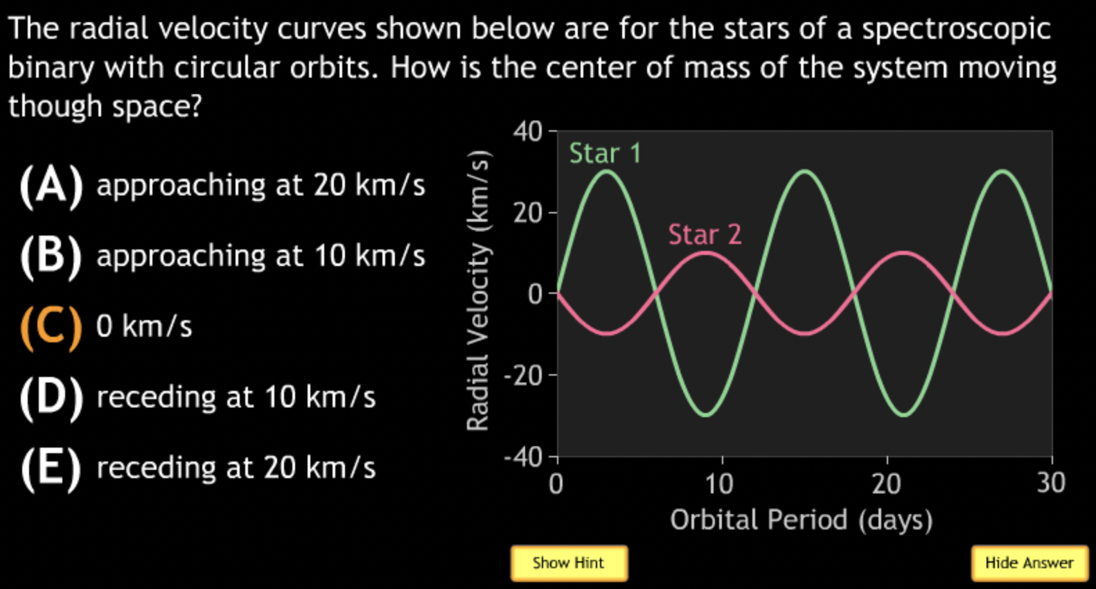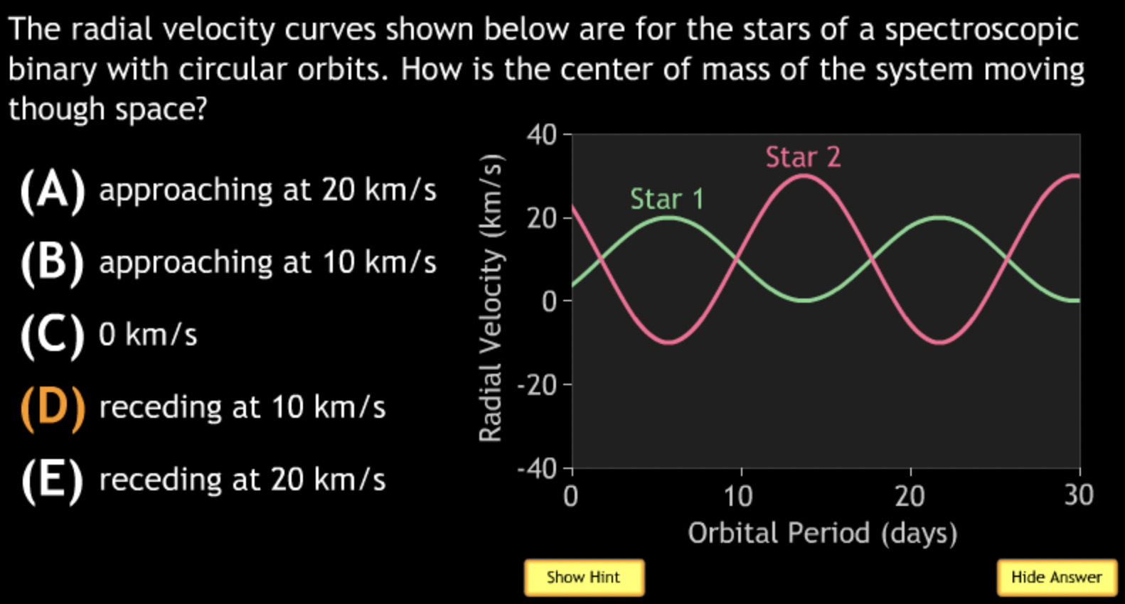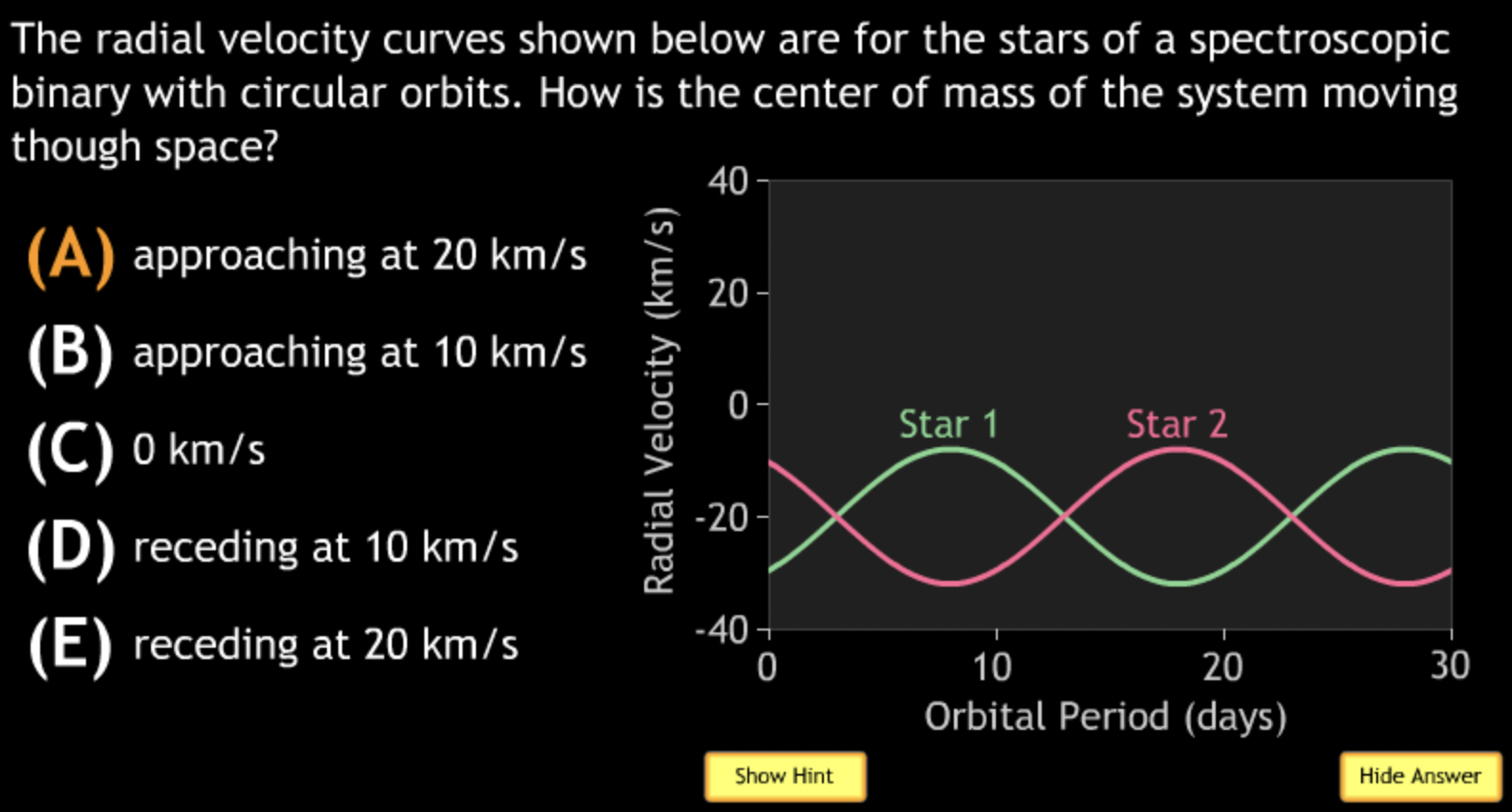 A star’s motion is given as 35km/s. This could be referring to the star’s… radial or tangential velocities.