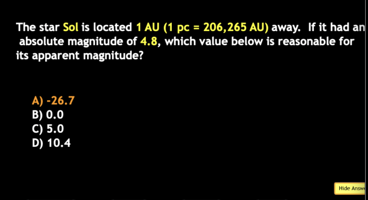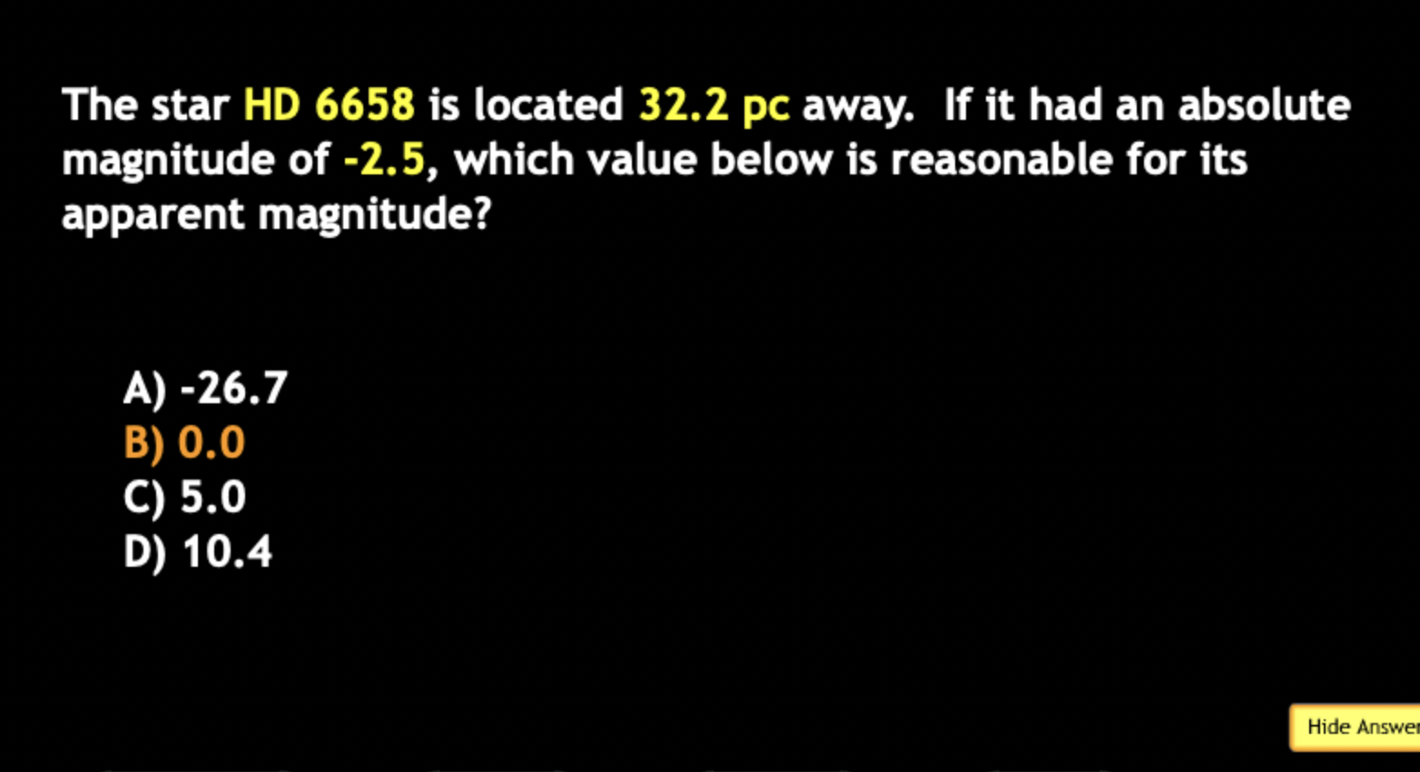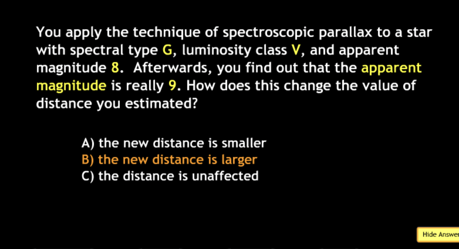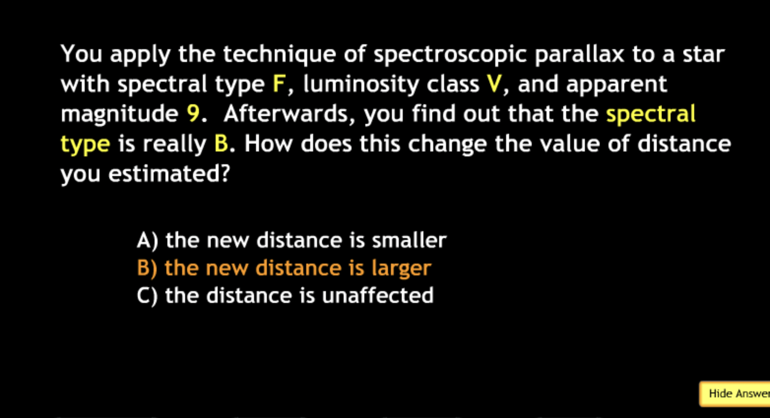 If a star has a parallax of 0.1 arcsecods, it must be at a distance of… 10 parsecs.