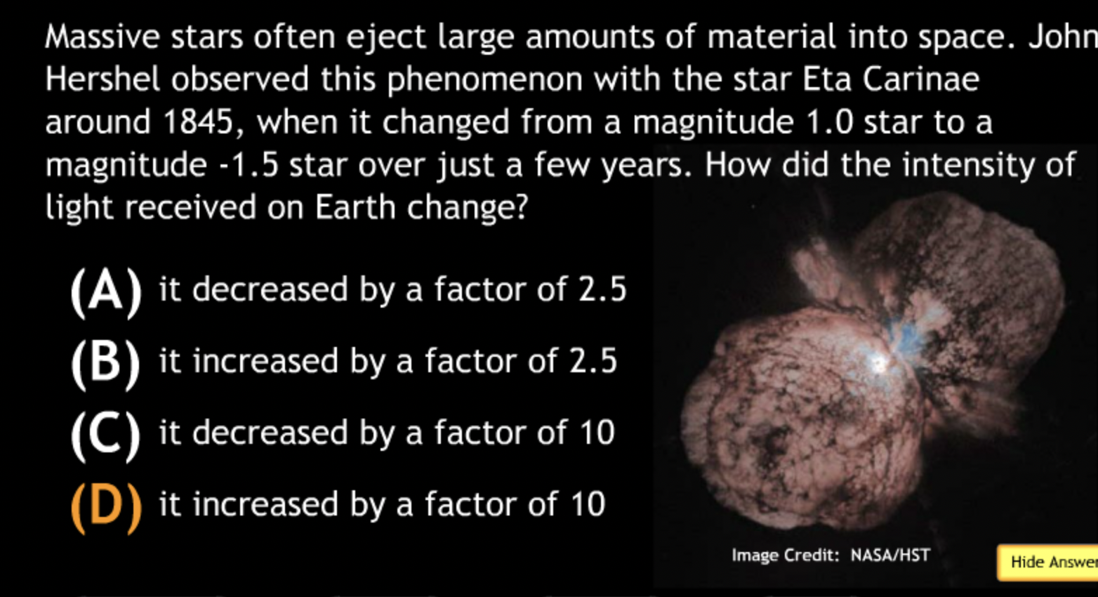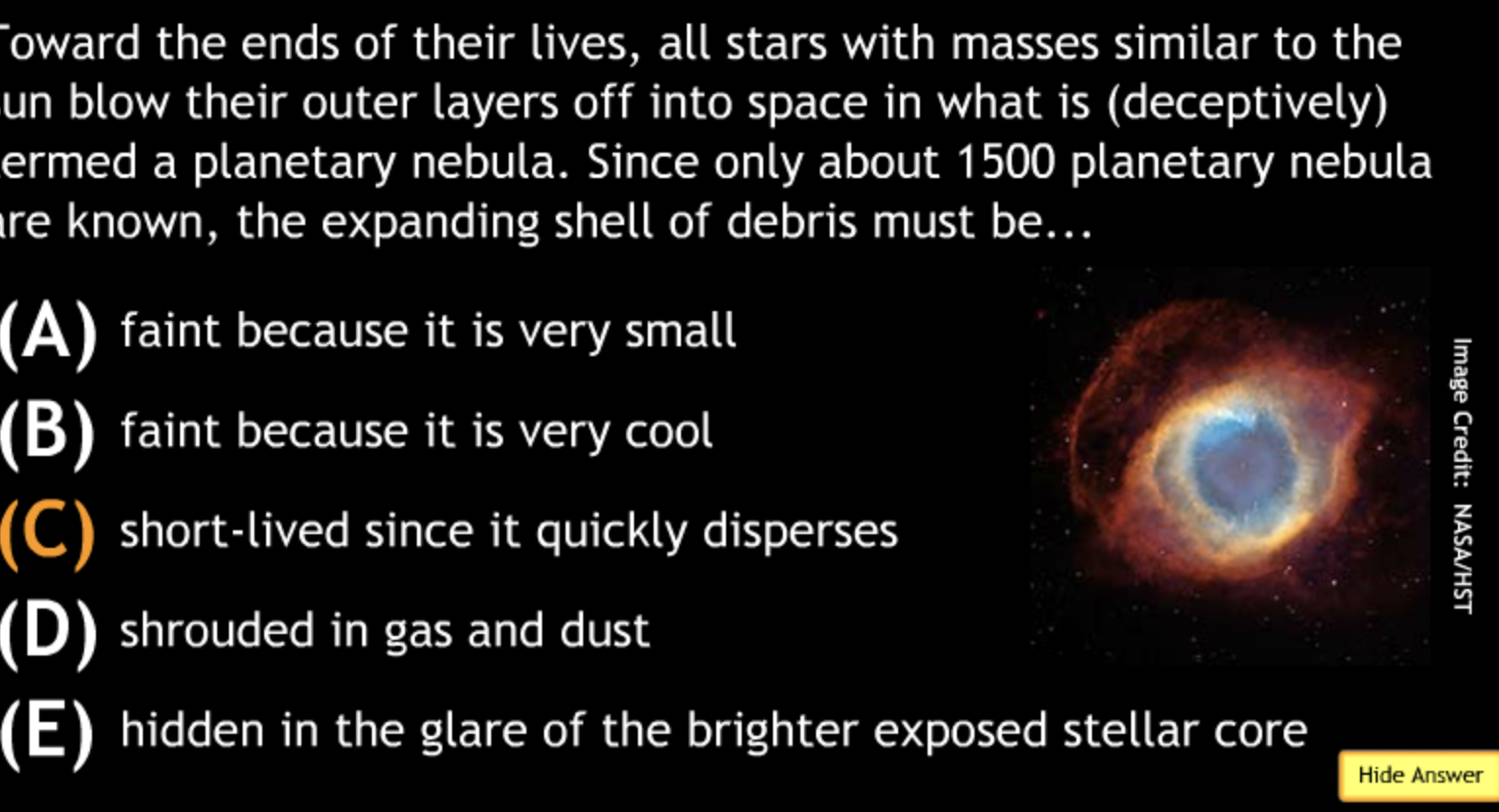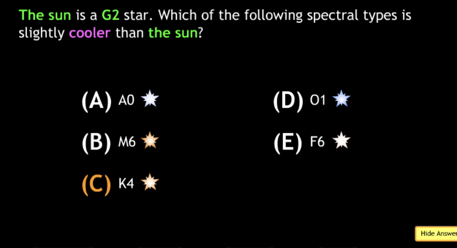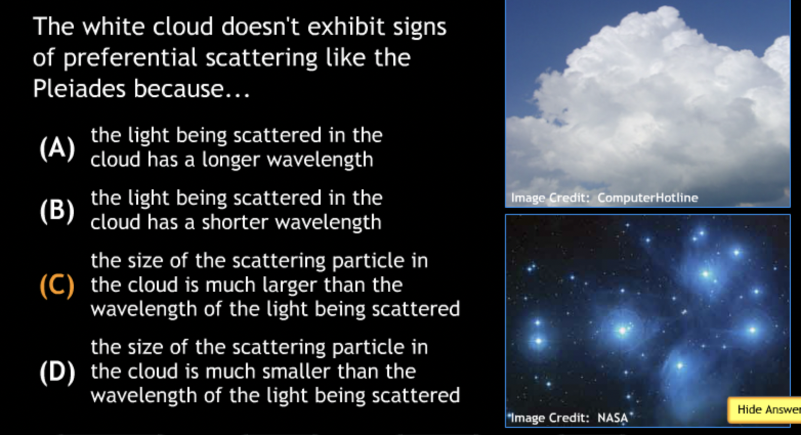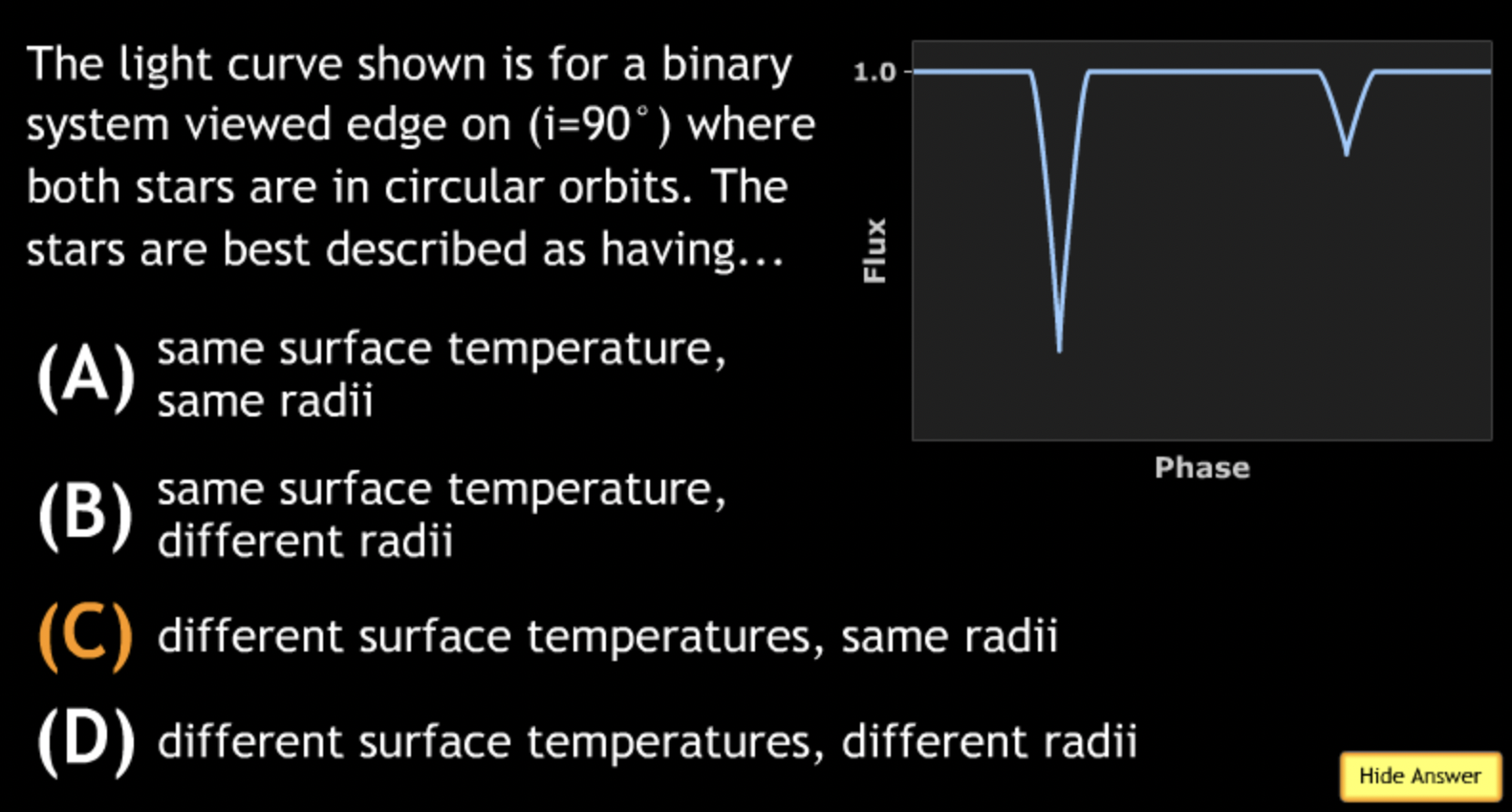 Emissions from the x-ray source Cygnus X-1 vary over timescales as small as 0.01 seconds. This implies that the size of the x-ray producing region must be…. smaller than 3000 km