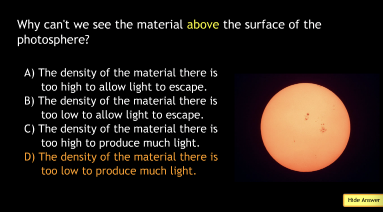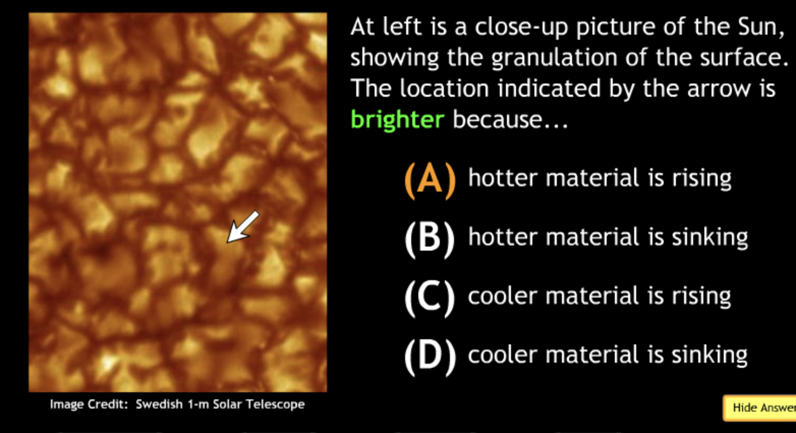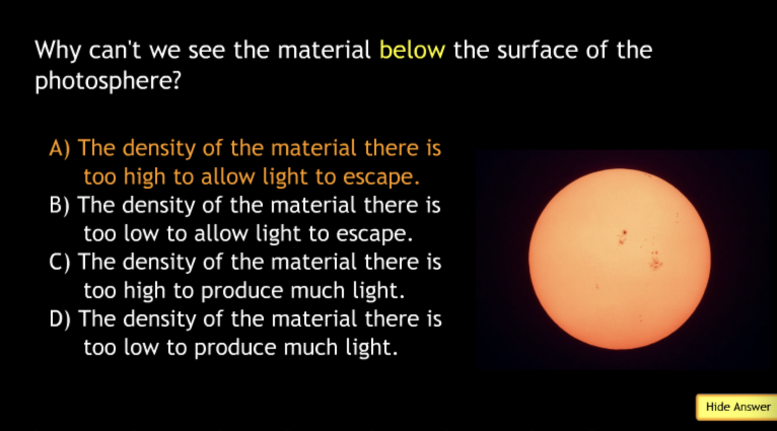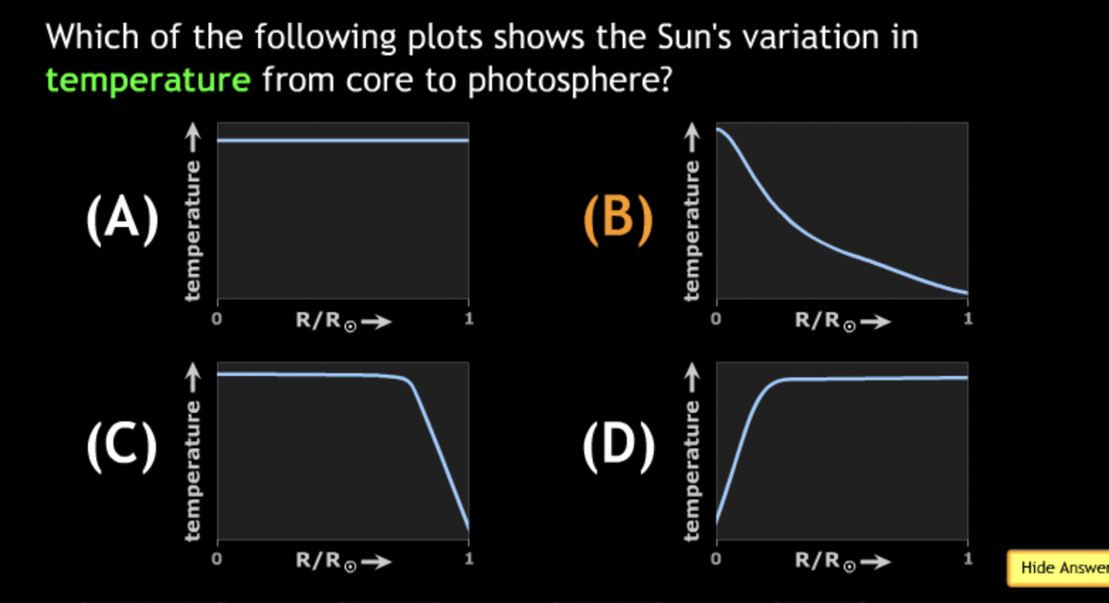A high-energy photon is produced by a nuclear reaction at the center of the Sun. This energy will leave the Sun… much later as a bunch of lower-energy photons.
