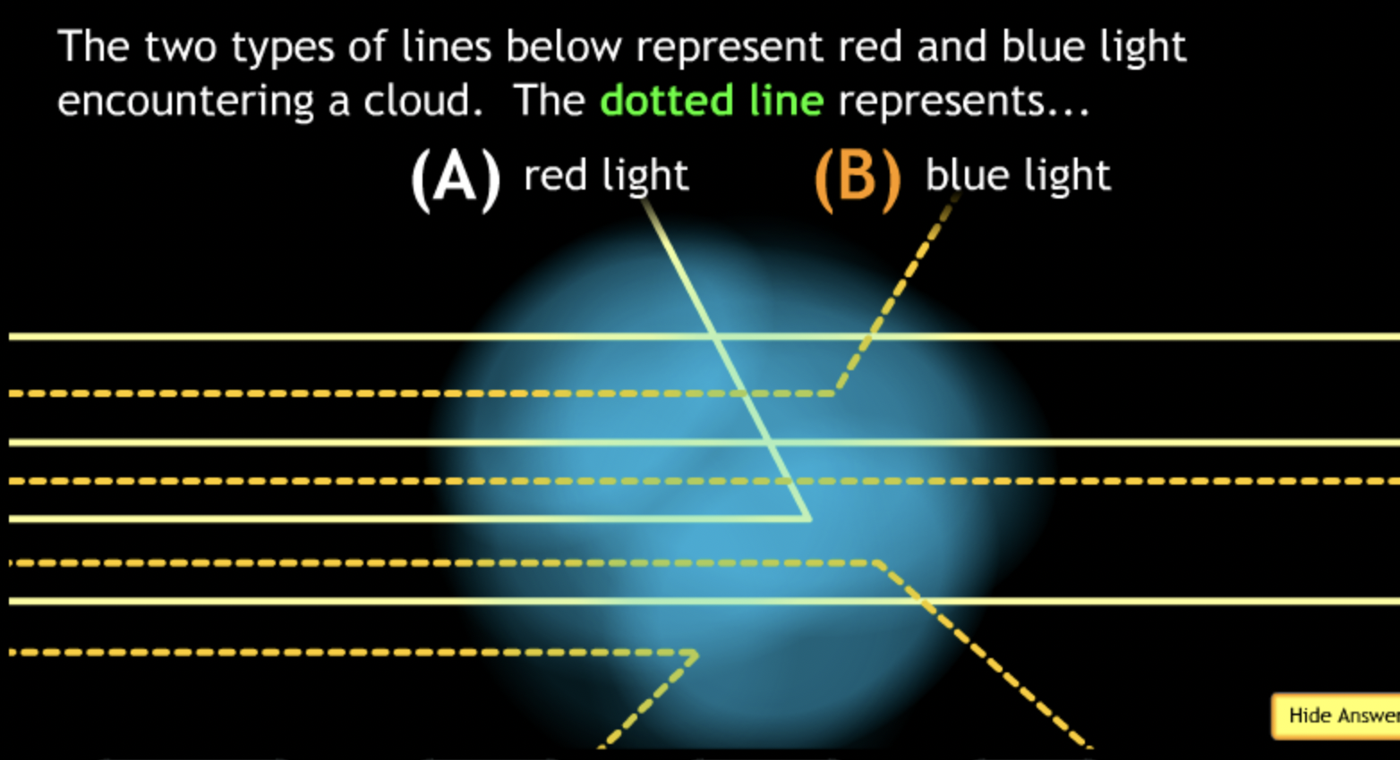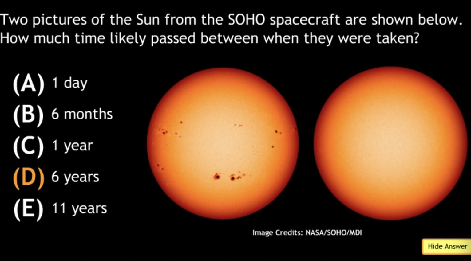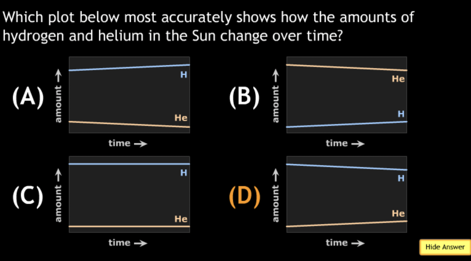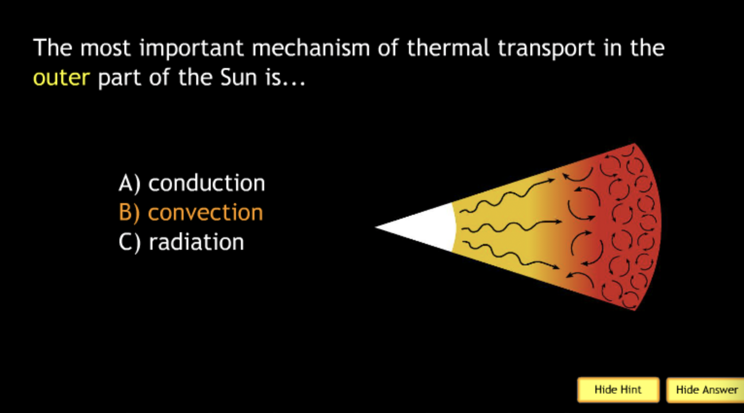 A high-energy photon is produced by a nuclear reaction at the center of the Sun. This energy will leave the Sun… much later as a bunch of lower-energy photons.