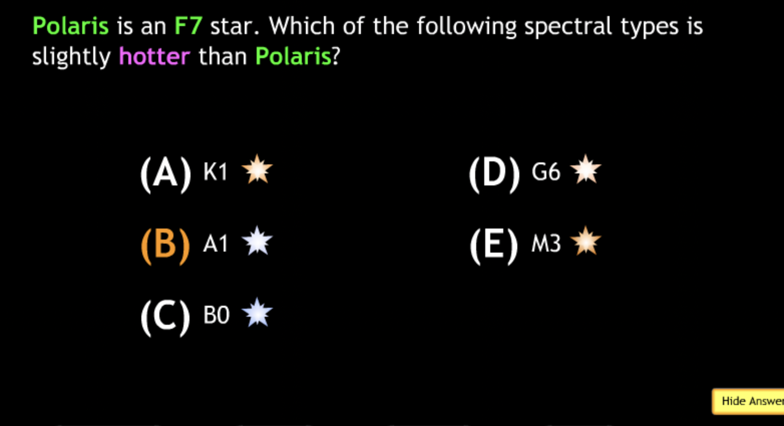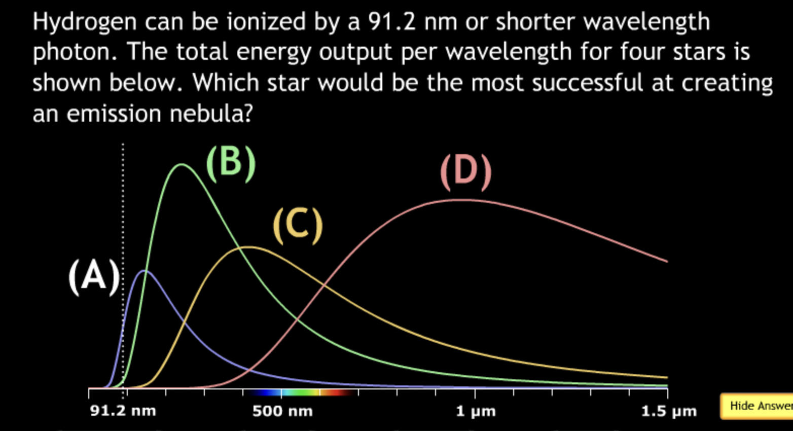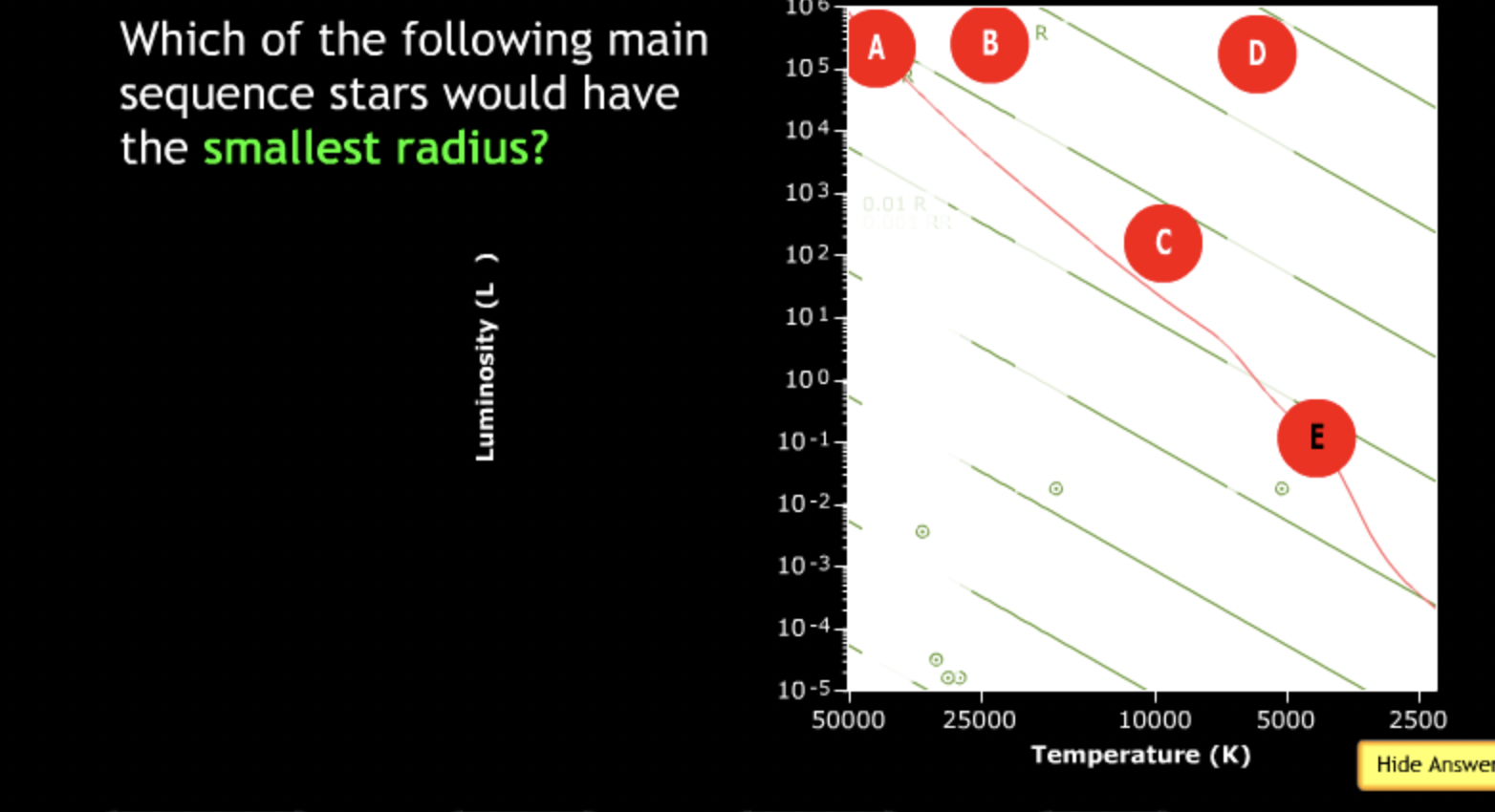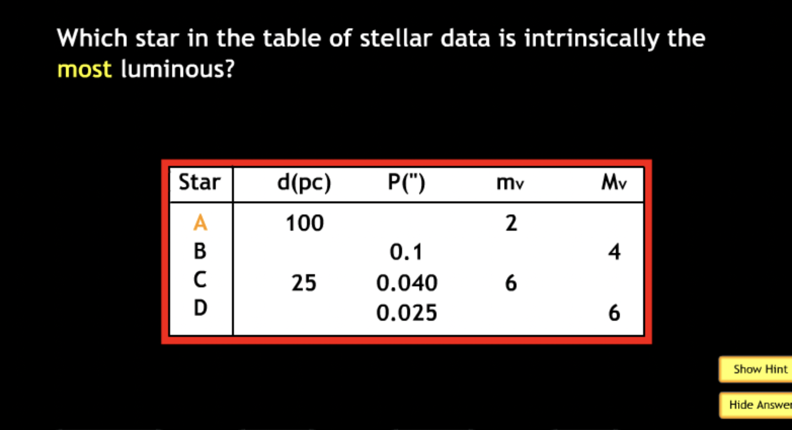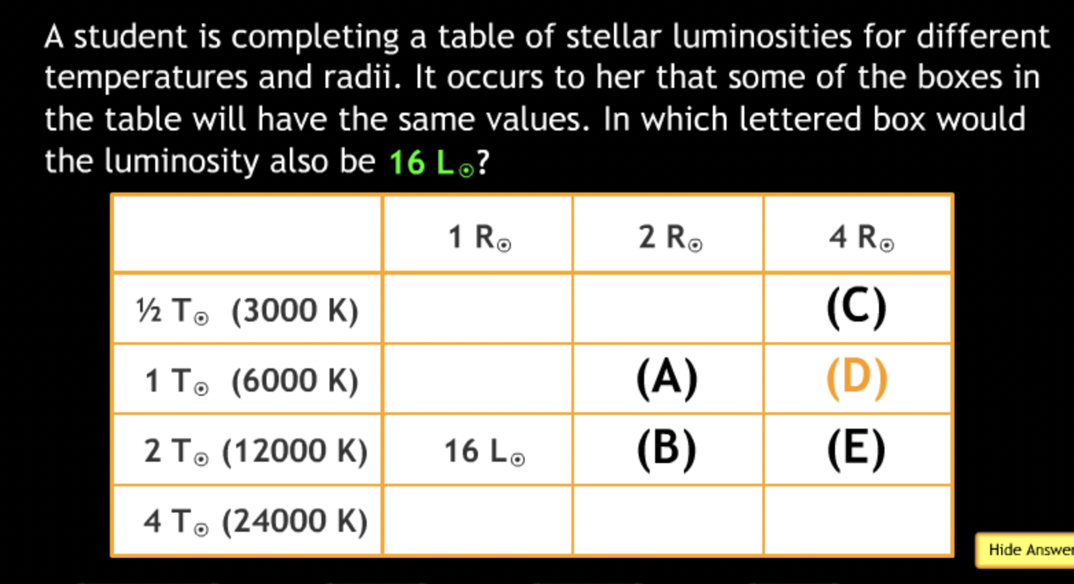 Two stars have the same luminosity. If star A has a hotter surface temperature than star B, then… star A is smaller