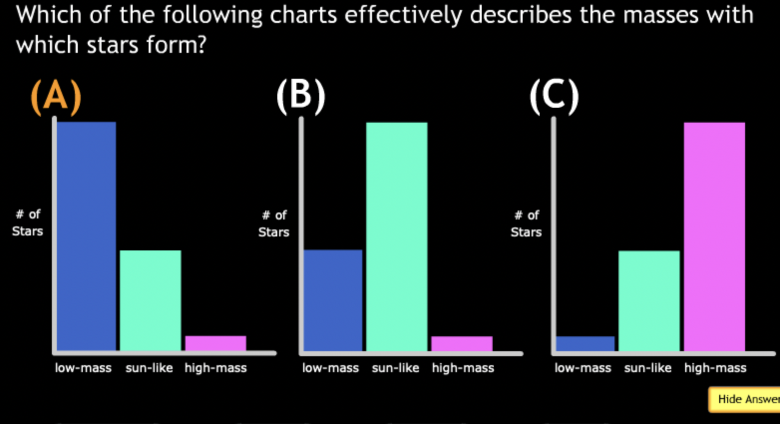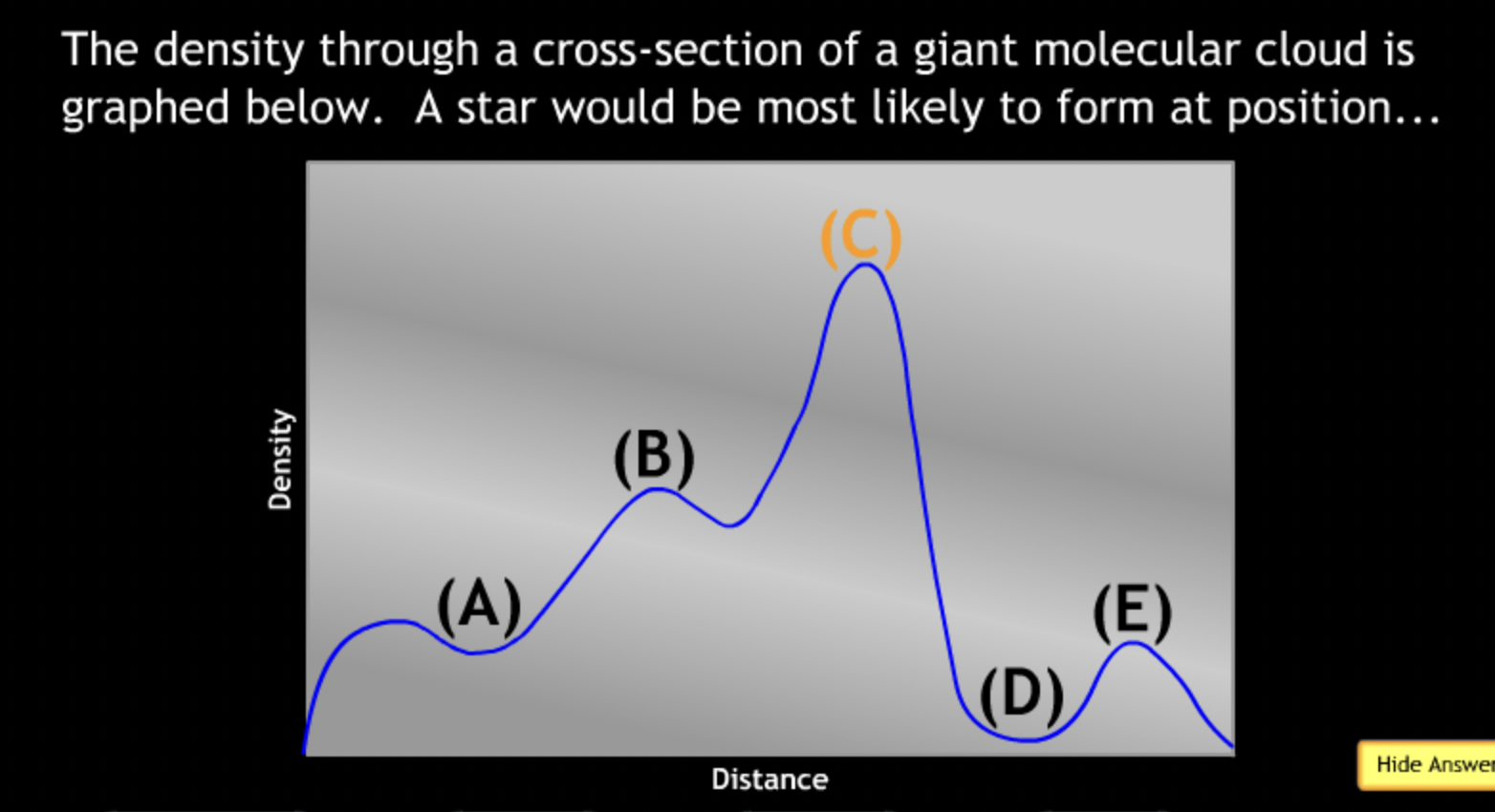 The likelihood of stars forming in a molecular cloud depends upon its….. temperature, mass, and radius