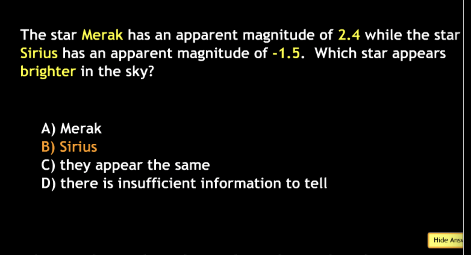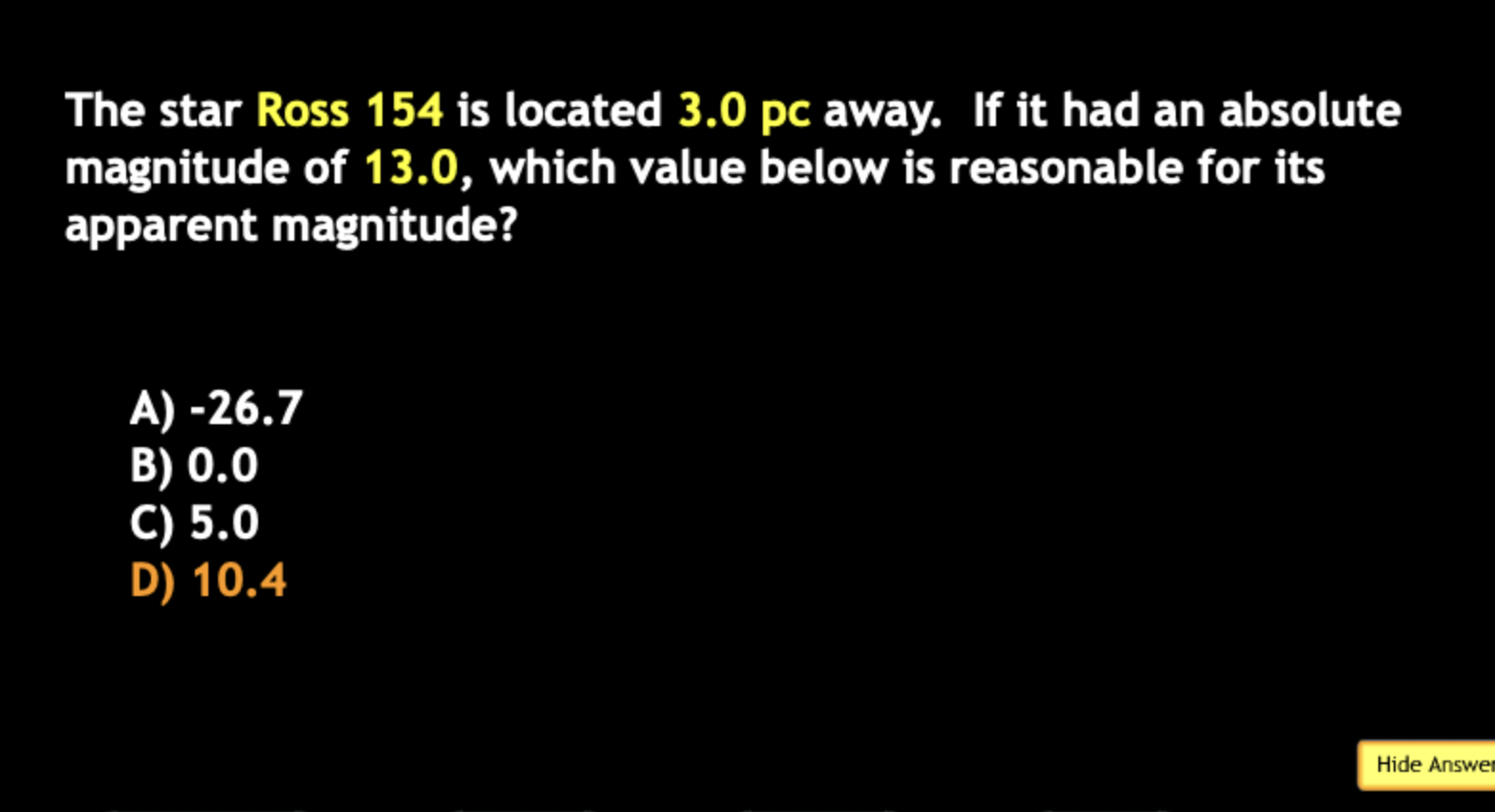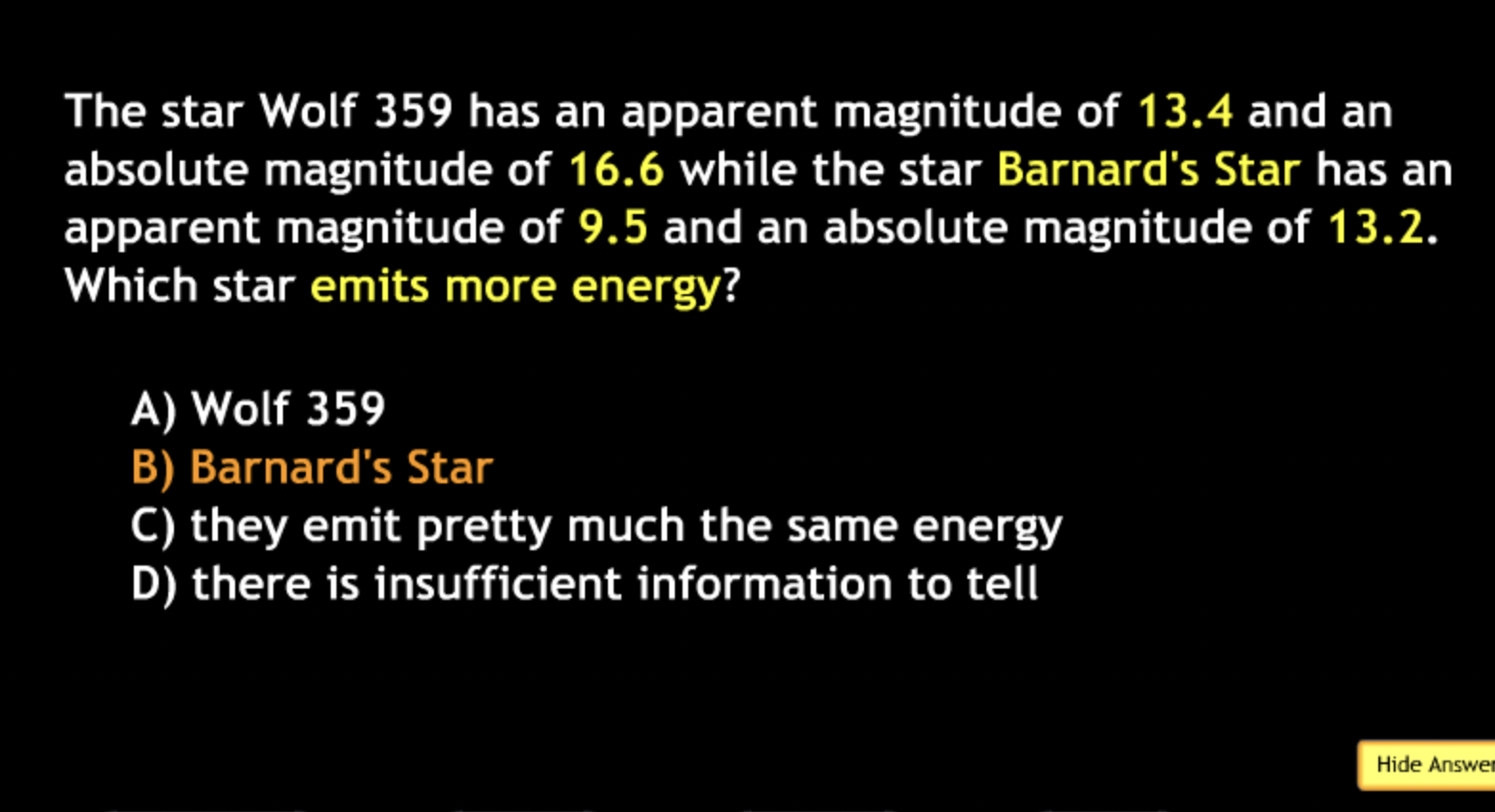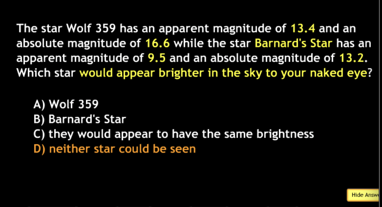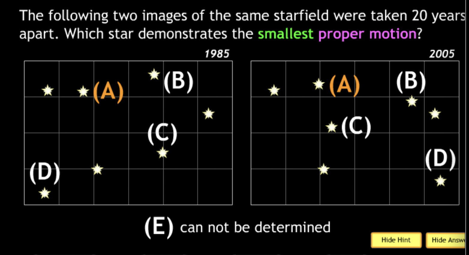 Barnard’s star has the largest proper motion of any star at 10.3 “/year. This large proper motion is (most logically) due to… the star being very close nearby