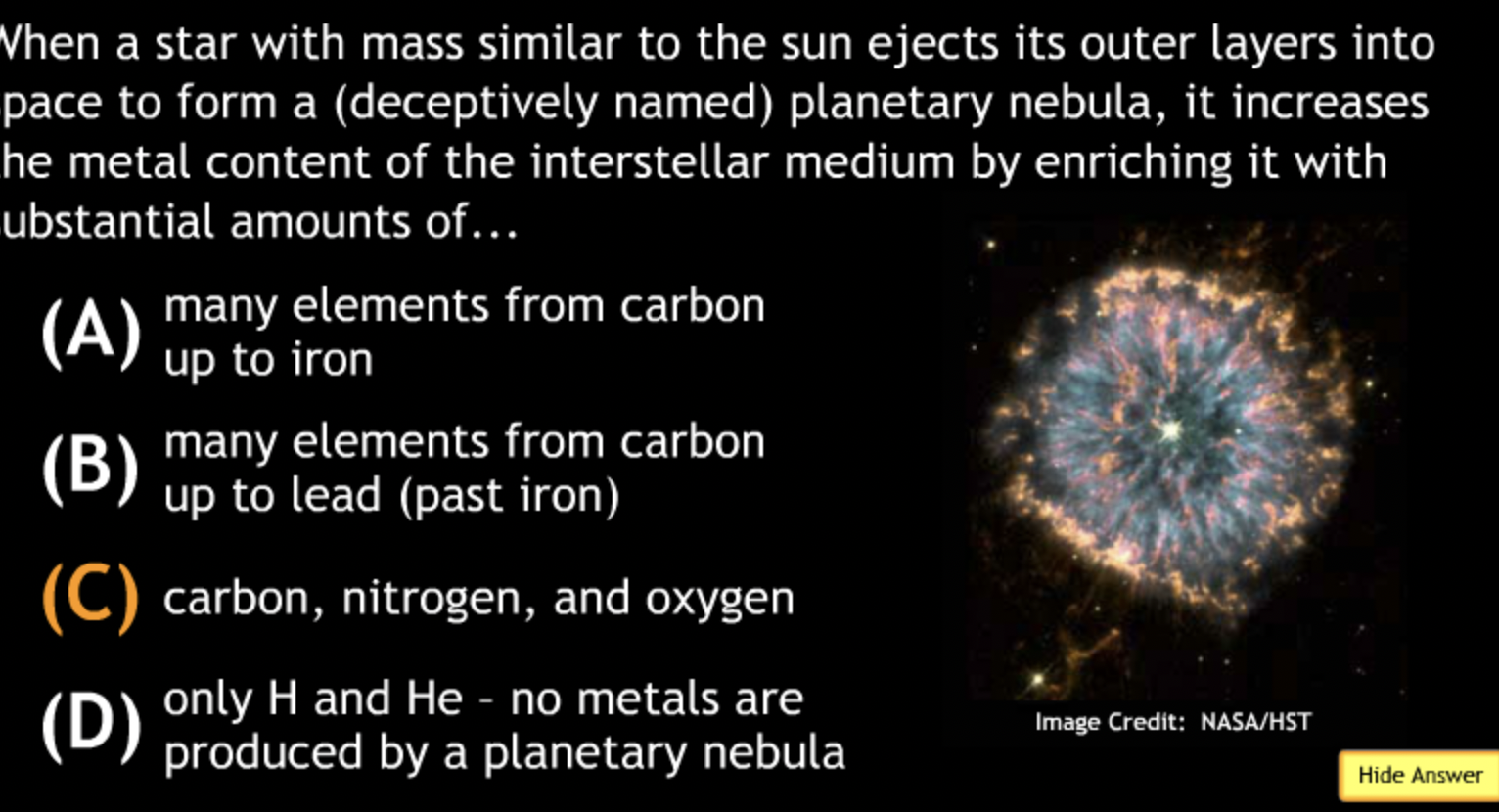 Asymptotic GIant Branch stars show strong evidence of carbon in their spectra and are known as carbon stars. This occurs because…. convective cells dis down to the helium burning shell and carry carbon to the surface