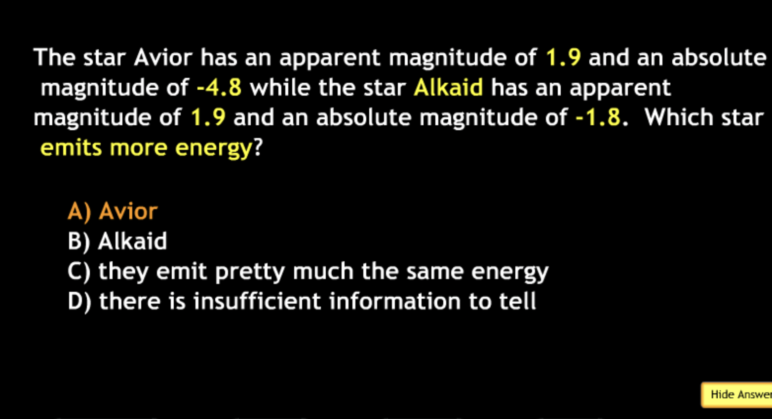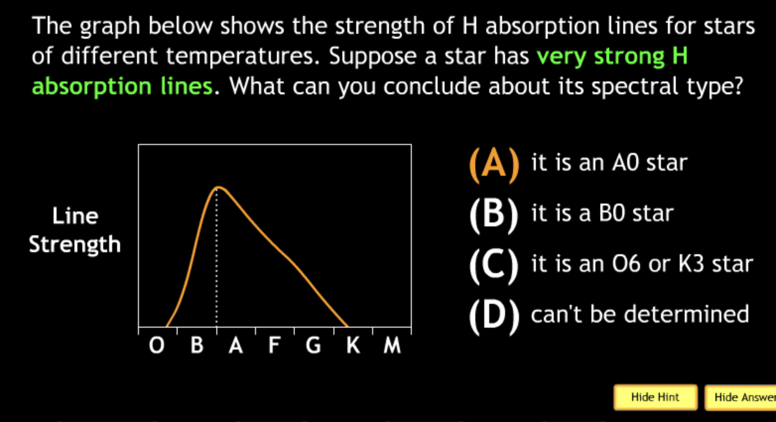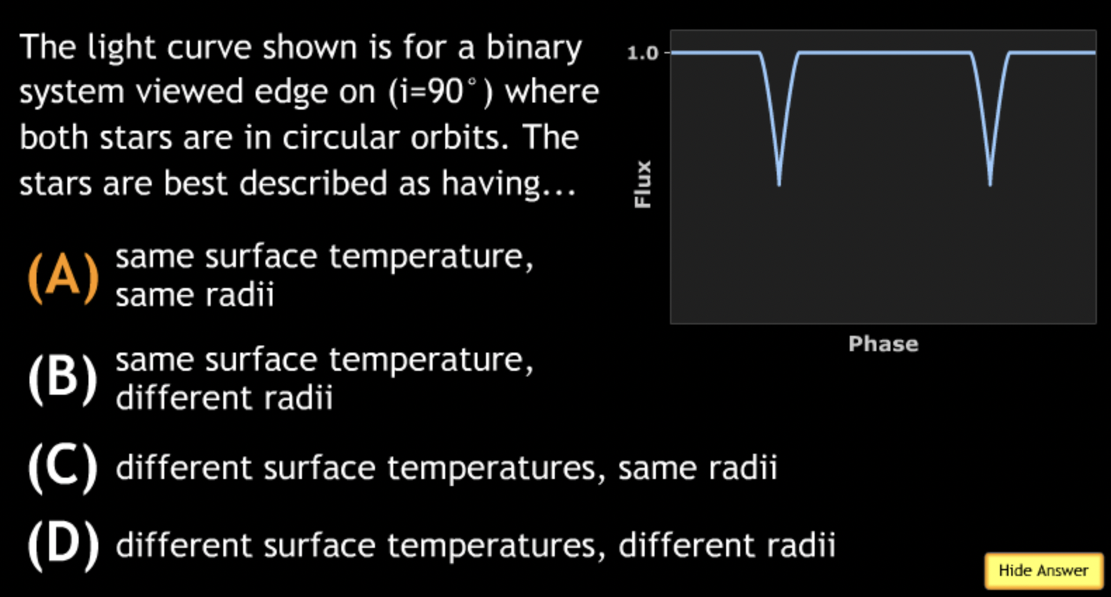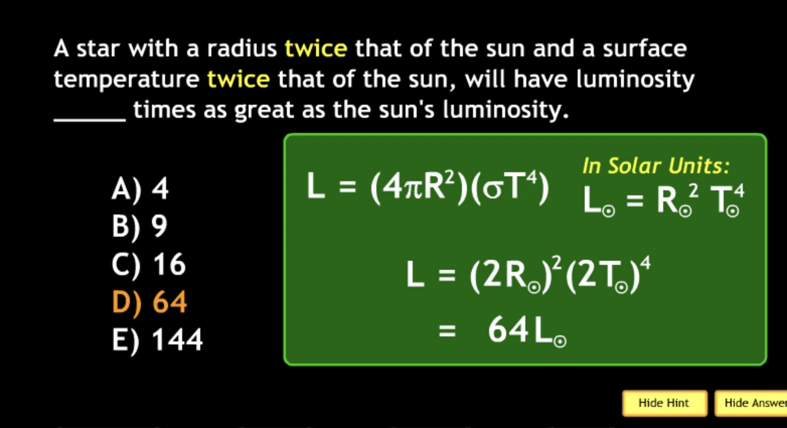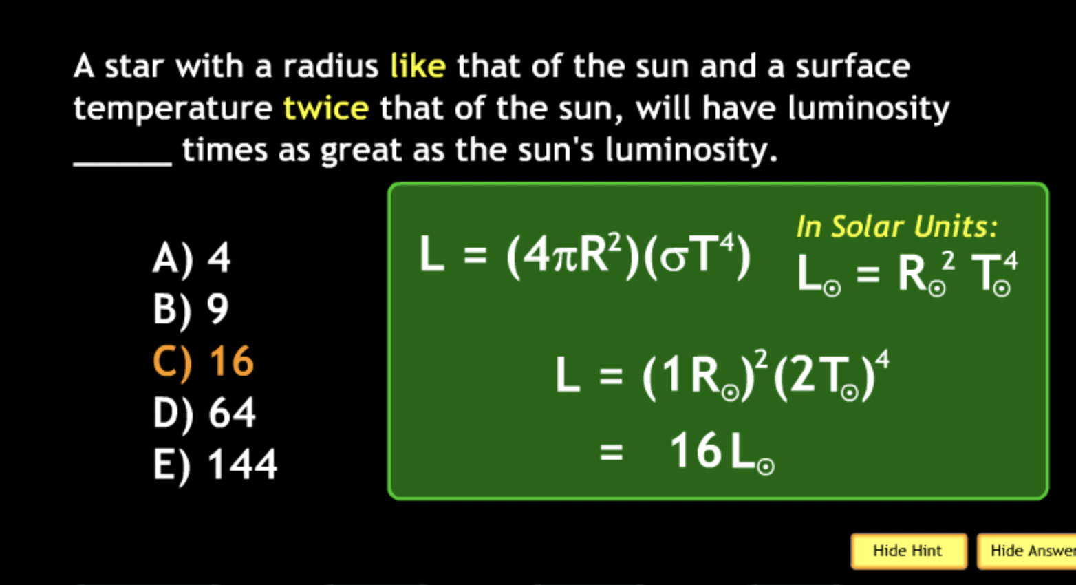 Two stars have the same surface temperature. If star A has a greater luminosity than star B, then… star A is larger