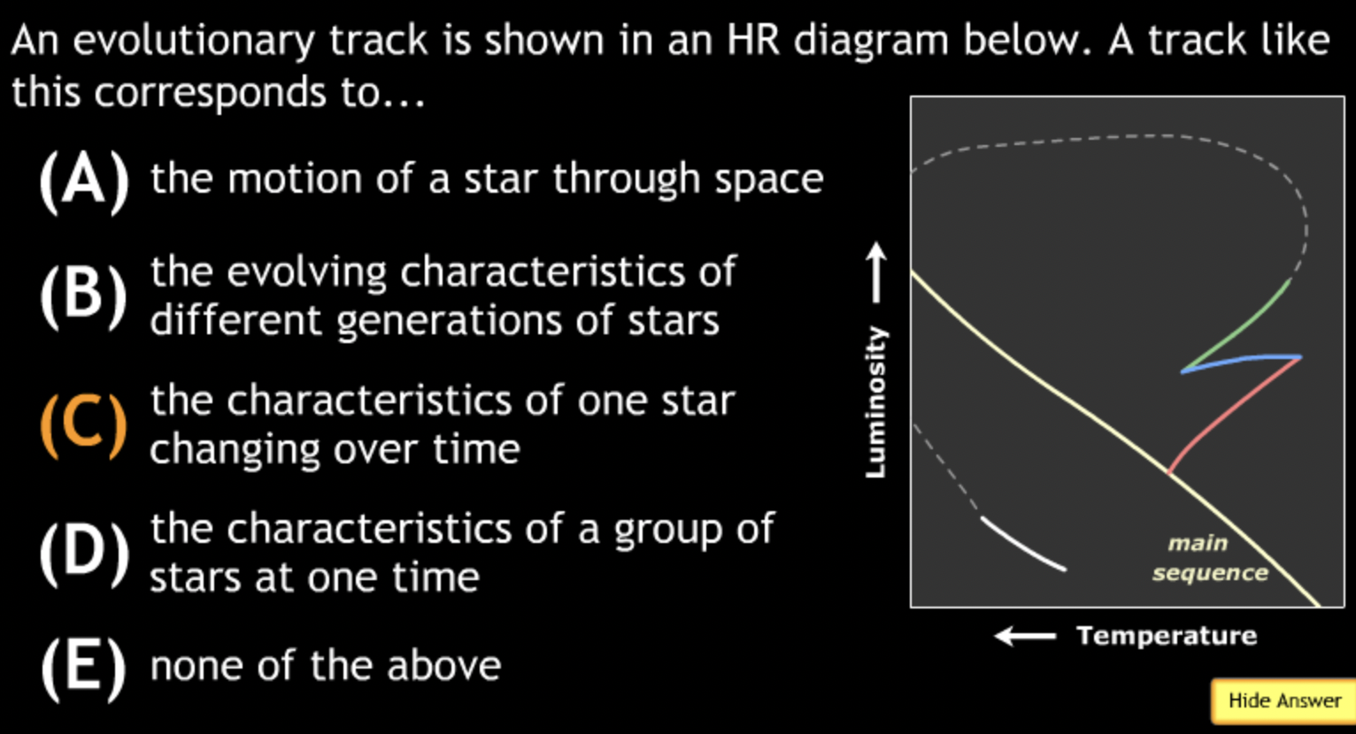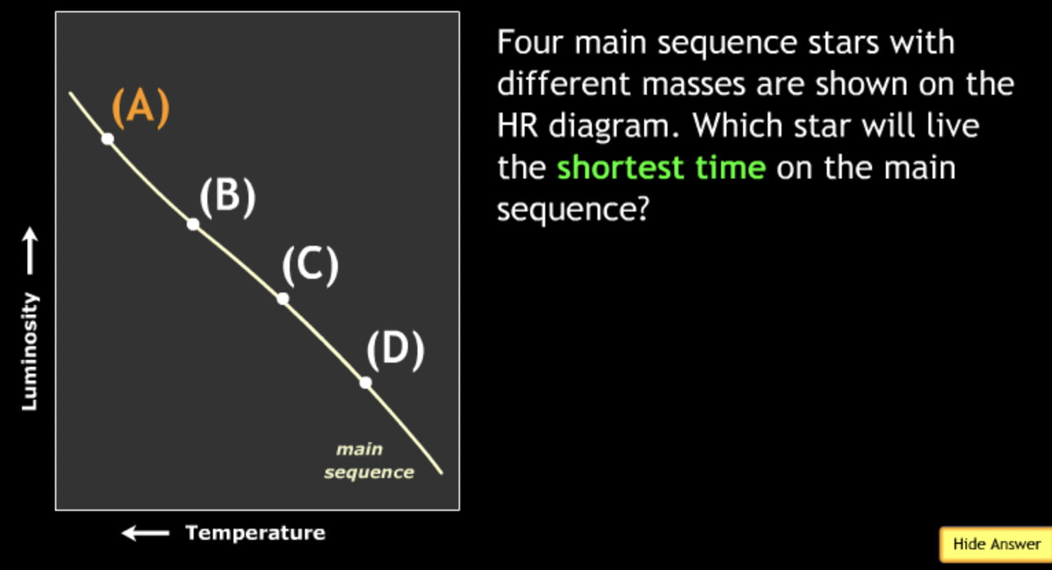 Compared to the evolutionary track of a star like the sun, the track of a high^mass star… all of the above