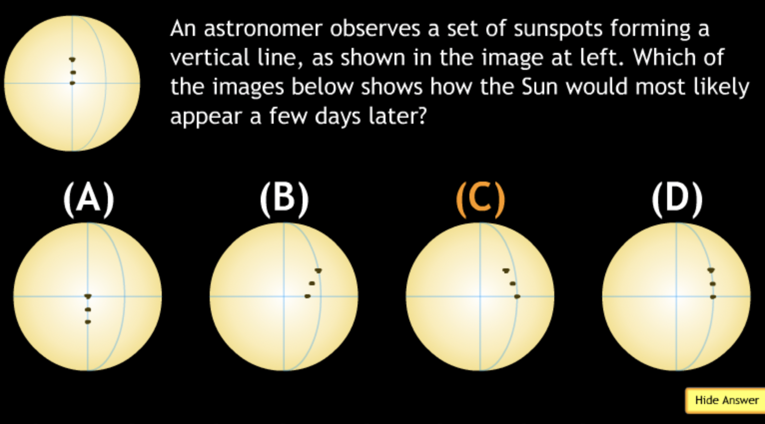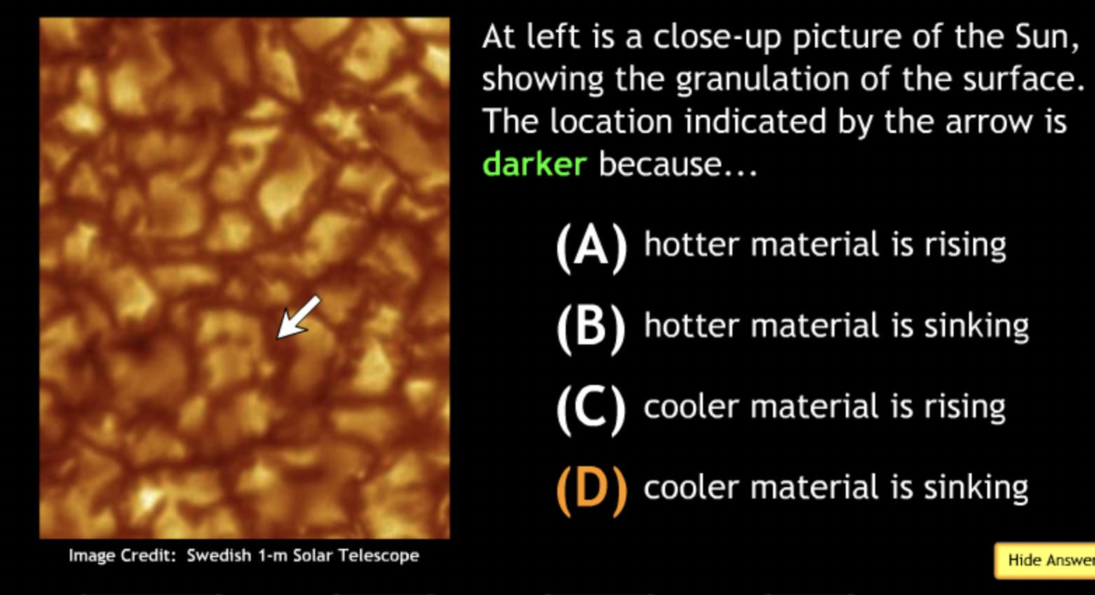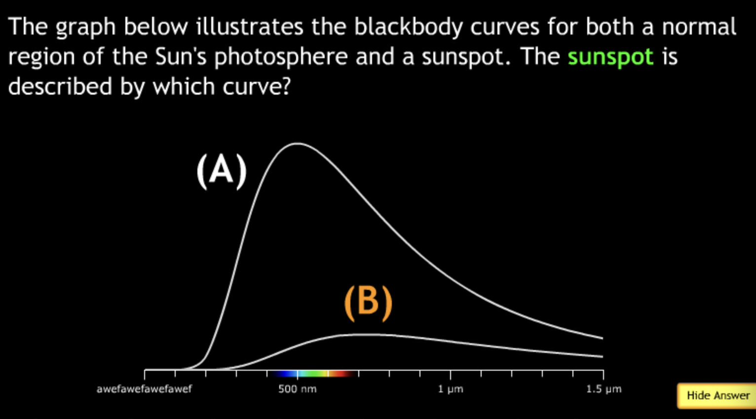 Sunspots appear dark because….. they are cooler than the surrounding region