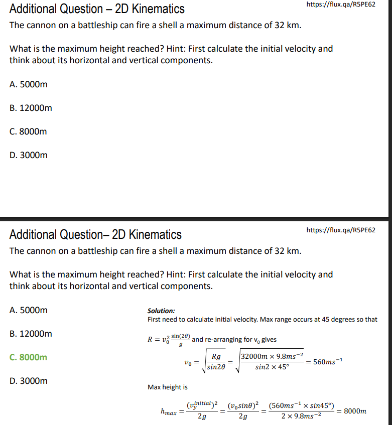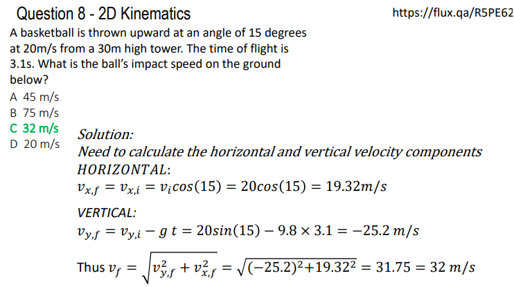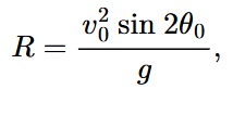where v0 is the initial speed and \theta0 is the initial angle relative to the horizontal.