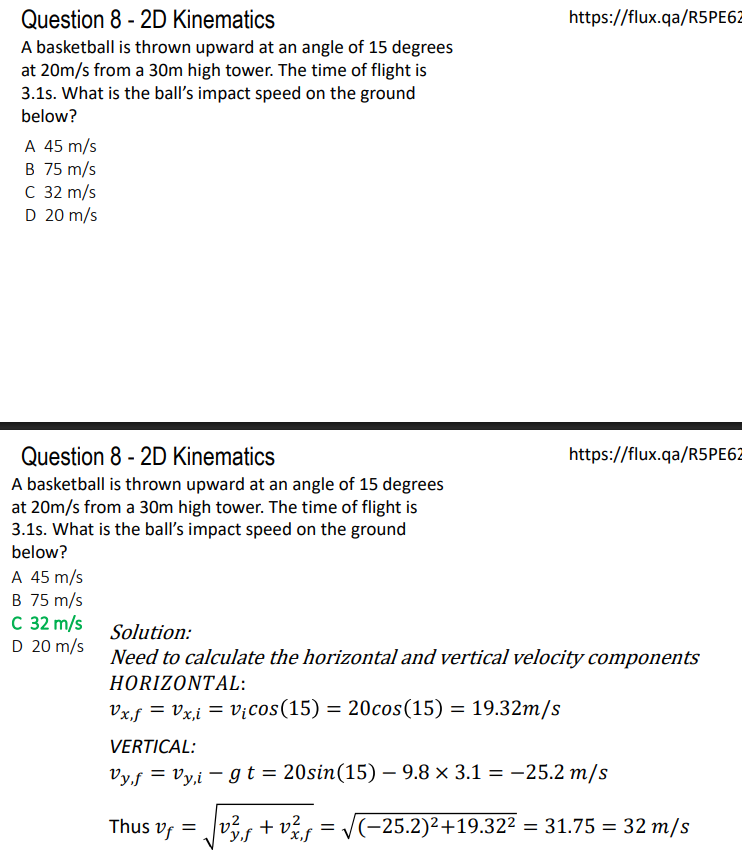 Step 3: Solve for the unknowns in the two separate motions - one horizontal and one vertical.
