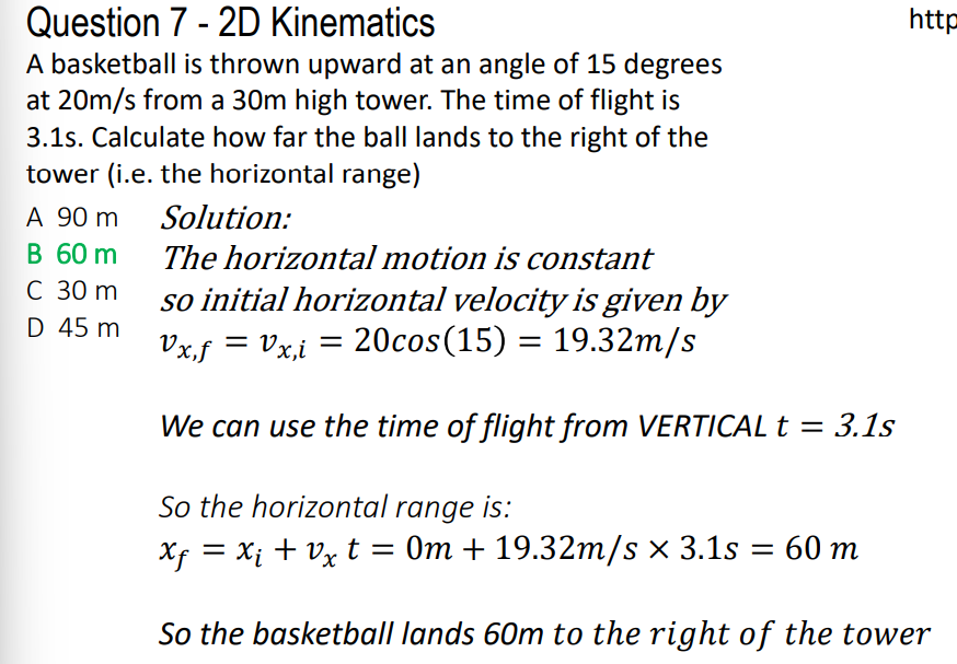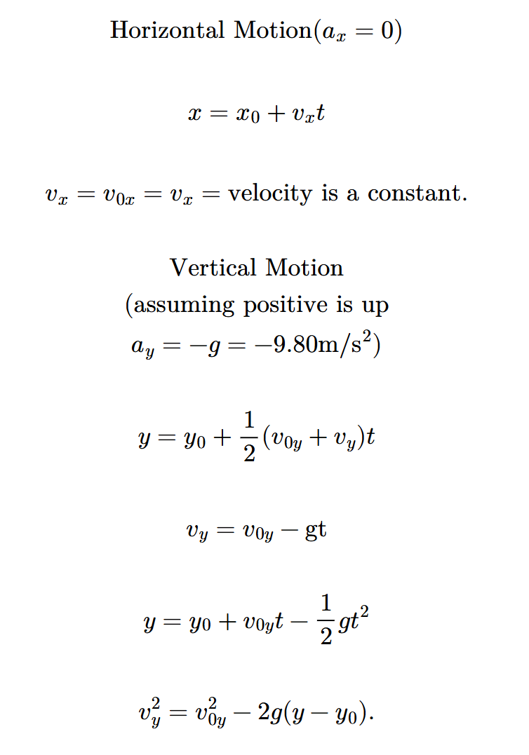 Step 2: Treat the motion as two independent one-dimensional motions, one horizontal and the other vertical. The kinematic equations for horizontal and vertical motion take the forms: