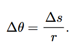 s is arc length, the distance travelled along a circular path and r is the radius of the curvature of the circular path.