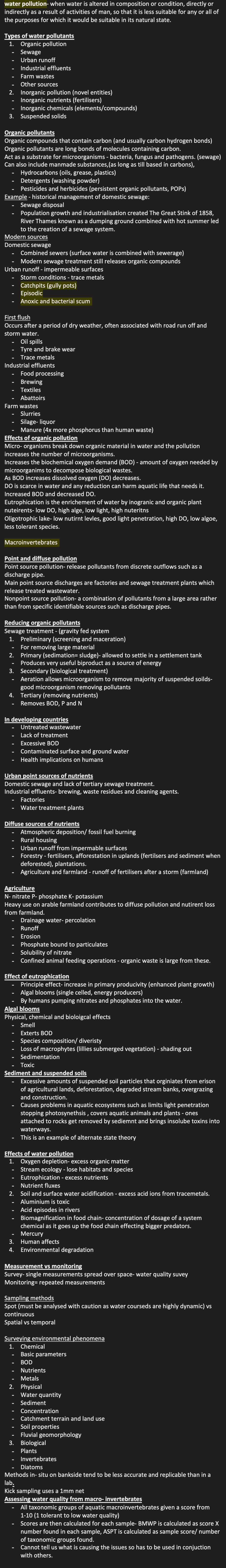 Point source pollution- release pollutants from discrete outflows such as a discharge pipe.