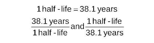 write the half-life equality and conversion factors