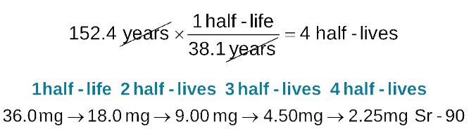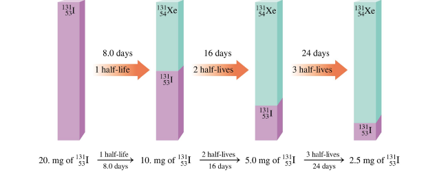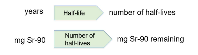 Practical interpretation: each full half-life halves the remaining amount; fractions of half-lives reduce accordingly.