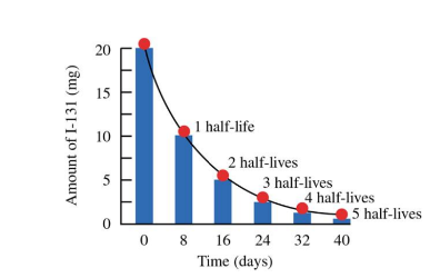 Half-life is the time required for the radiation level (or quantity of a radioisotope) to decay to one-half of its original value.