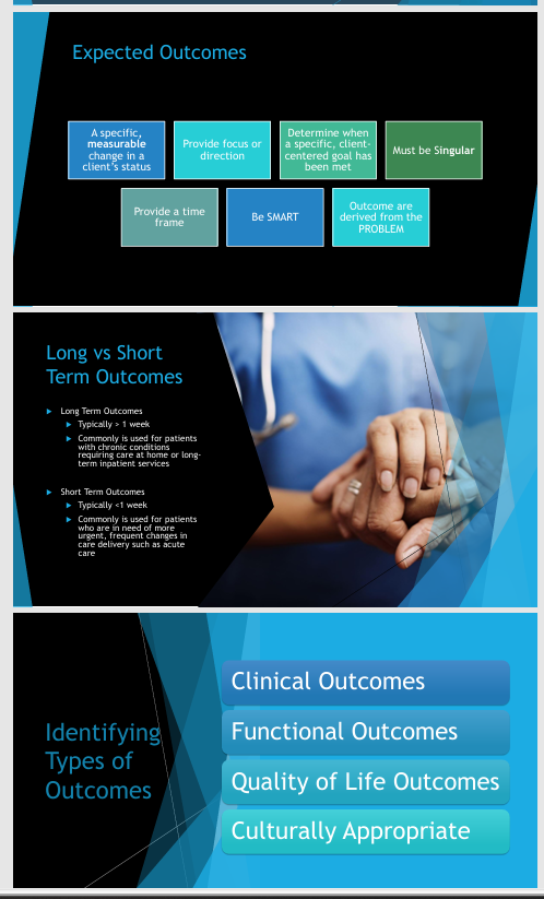 If outcomes are met: terminate the plan and discharge or move to a new problem