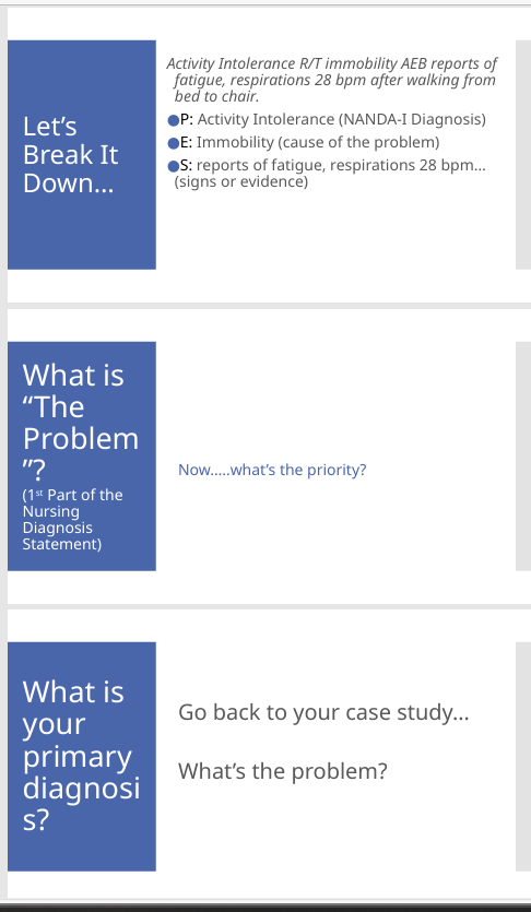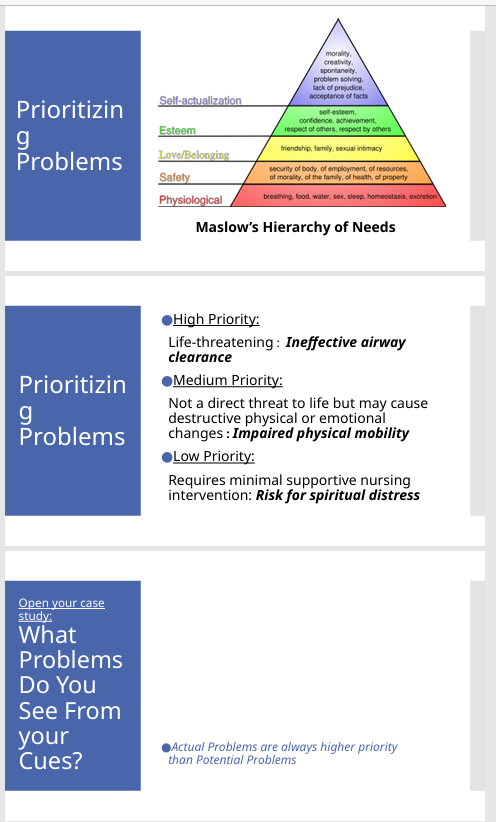 Address the actual nursing diagnosis/problem first; actual problems take priority over risk diagnoses