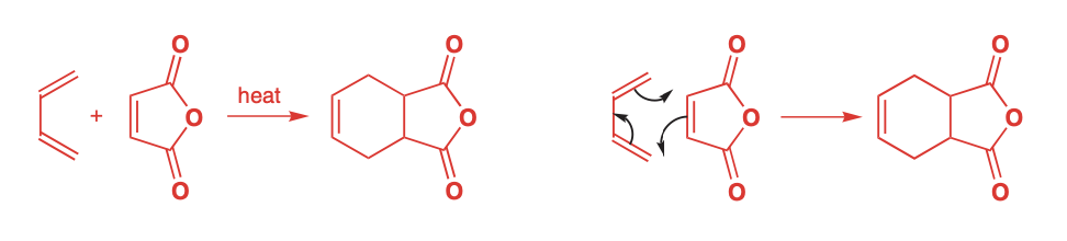 Cycloaddition - two or more molecules form to create a cyclic structure
