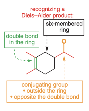 Six-member ring with a double bond inside the ring and a conjugating group outside of the ring, opposite to the alkene