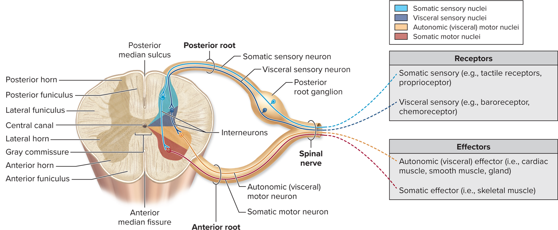 Sensory nuclei in the posterior horns contain interneuron cell bodies.