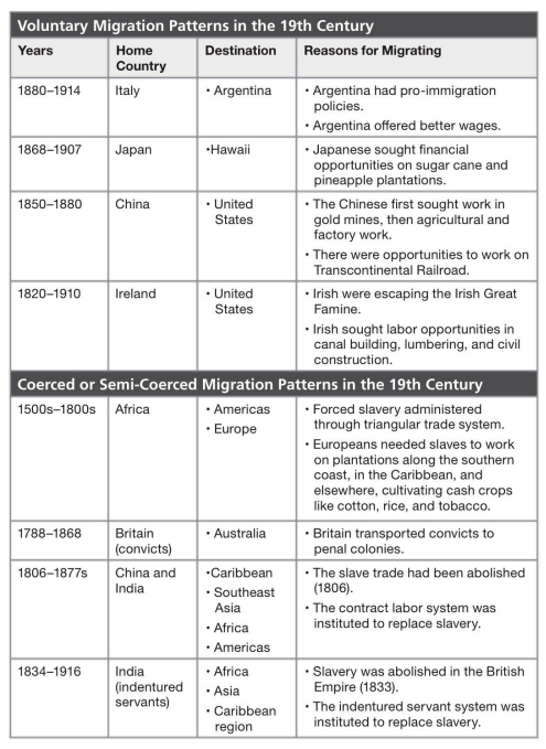 Contract labor emerged as a form of migration where workers, often from Asia, agreed to work for an employer in a foreign country under a fixed-term contract. This system was especially common in the construction of railroads and in plantation agriculture in places like Hawaii and the American West, providing essential labor for developing economies but often under conditions that limited workers' freedoms and rights.