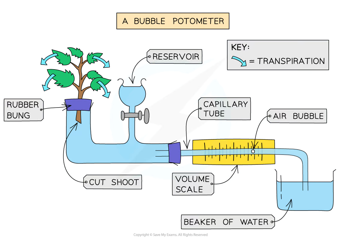 a simple piece of apparatus which measures the rate of water loss as transpiration or the rate of water uptake
