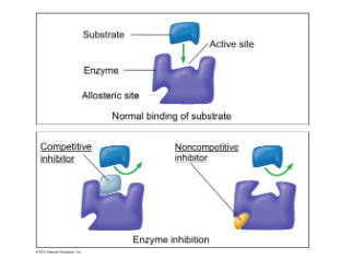 - Enzyme inhibitors are ==molecules that binds to an enzyme== and ==turn them off in a chemical rxn==