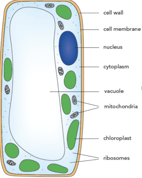 Vacuole | keep the cell shape, surrounded by membrane, contains a solution of sugars and cell sap | plants/animals (vesicles) |