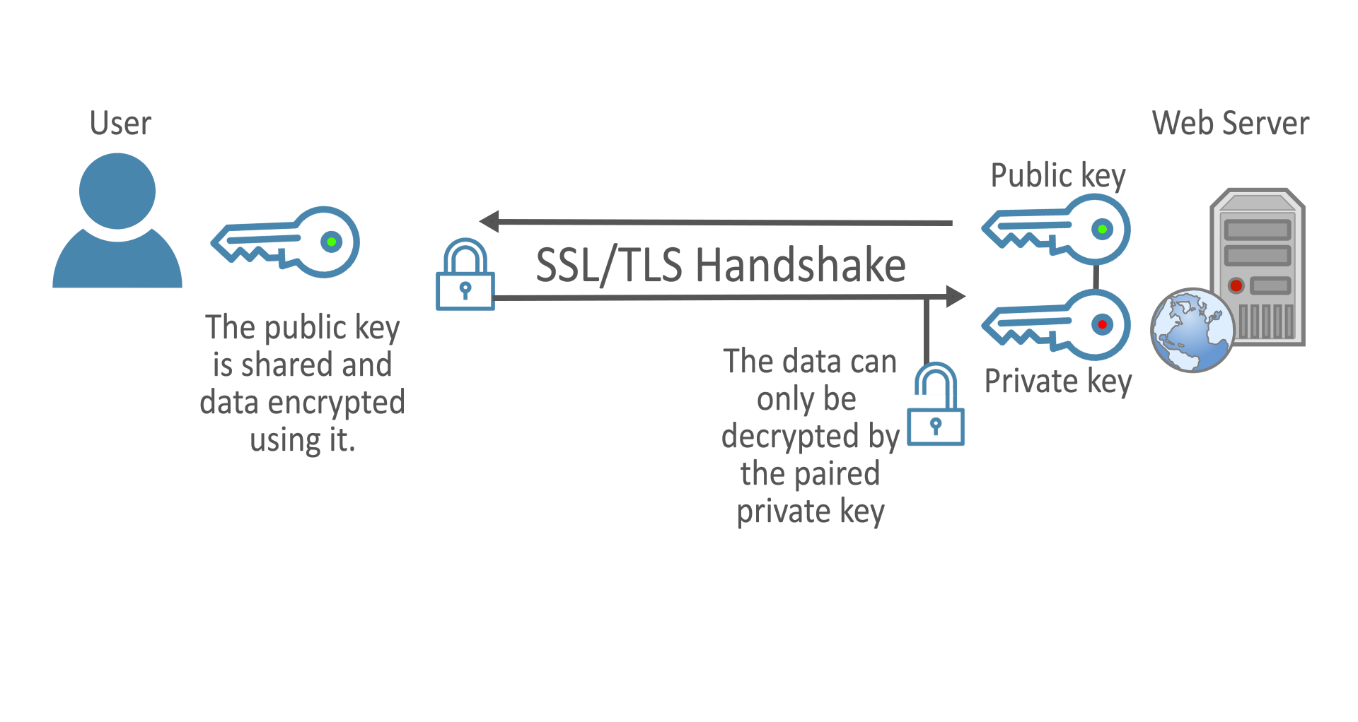 Secure Sockets Layer (SSL) and Transport Layer Security (TLS) are the most common forms of encryption found on the internet today. Though SSL was deprecated in 2015, TLS provides similar functionality with more robust security. TLS creates a secure channel over the internet between a client computer and a server by exchanging a public key in the form of a certificate. The certificate is issued by a registered and well-known certificate authority (CA), such as Verisign. The certificate has a public key that is stored on the webserver and presented to the public whenever a user connects to the website. The private key is also stored on the webserver but is kept secret and protected.