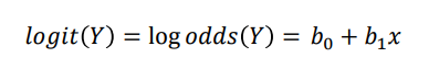 regression model makes prediction on Y but probability ranges [0;1] and odds range [0;∞] → need to create Log Odds of Y, which range [-∞; ∞]