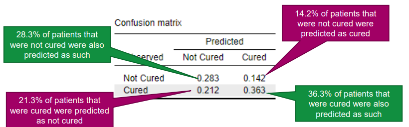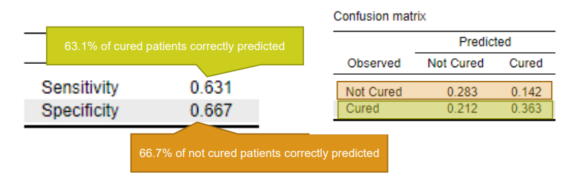 Interpretation: The ratio cured/ not cured is 1.354.