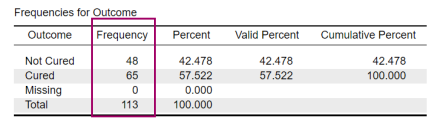 → get Proportion cured: ^P(cured) = no. cured/ total no