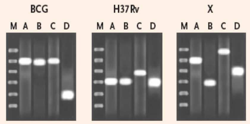 PCR amplification of MIRUs categorises the number and size of each repetitive unit
