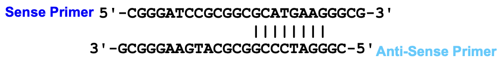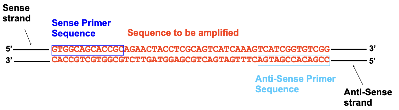 Sense Primer sequence is the same as the Sense strand and is complementary to Anti-Sense strand