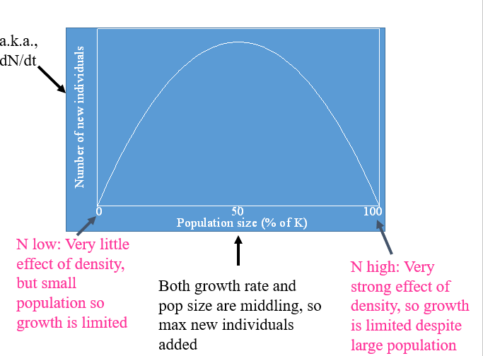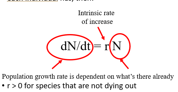 Net reproductive rate: Average number of offspring produced per individual. When this is greater than one, the population is growing. When this is less than one, the population is shrinking. This assumes a stable age distribution