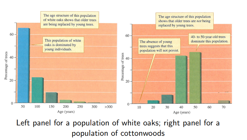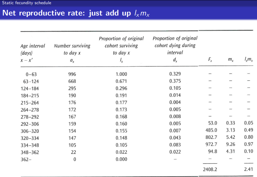 Fecundity schedules: track reproduction rates for different ages or stages (cohort and static versions)