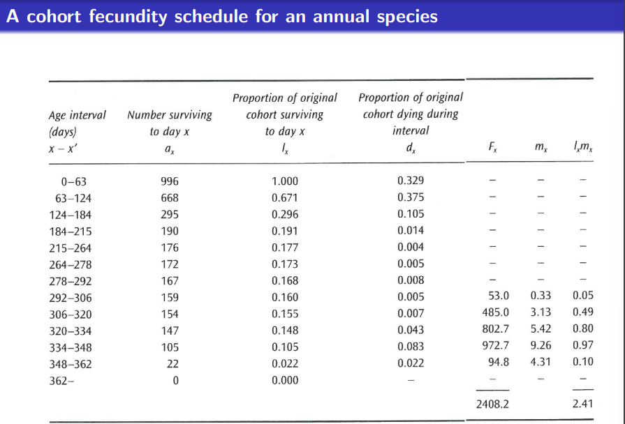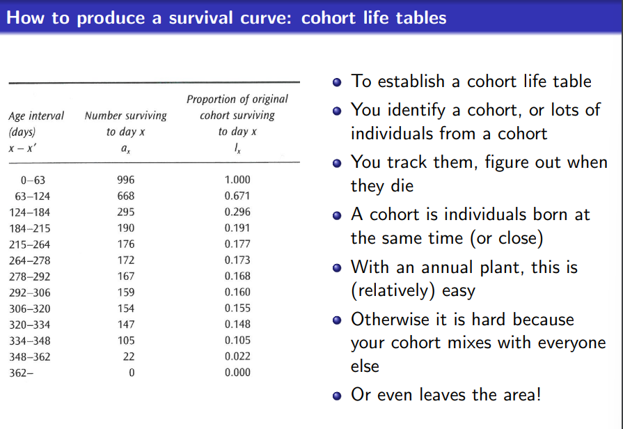Easy to make cohort tables for annual or sessile species, harder for other species such as those that move around