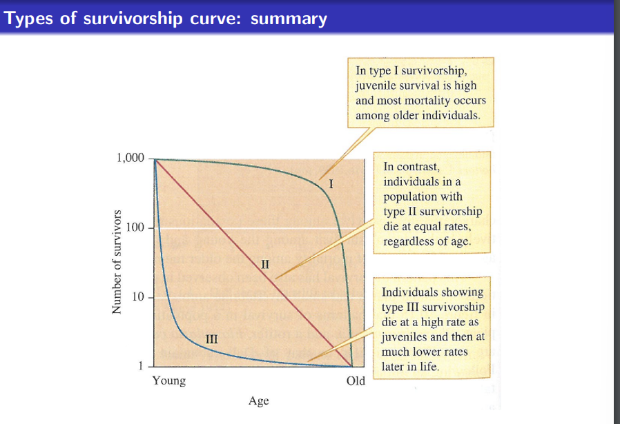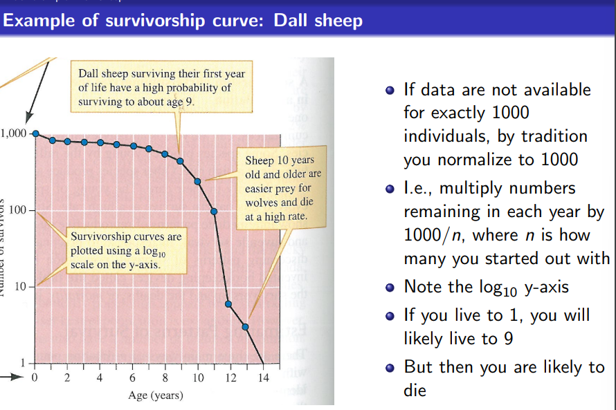 Number of survivors on survivorship curve must be on a log scale