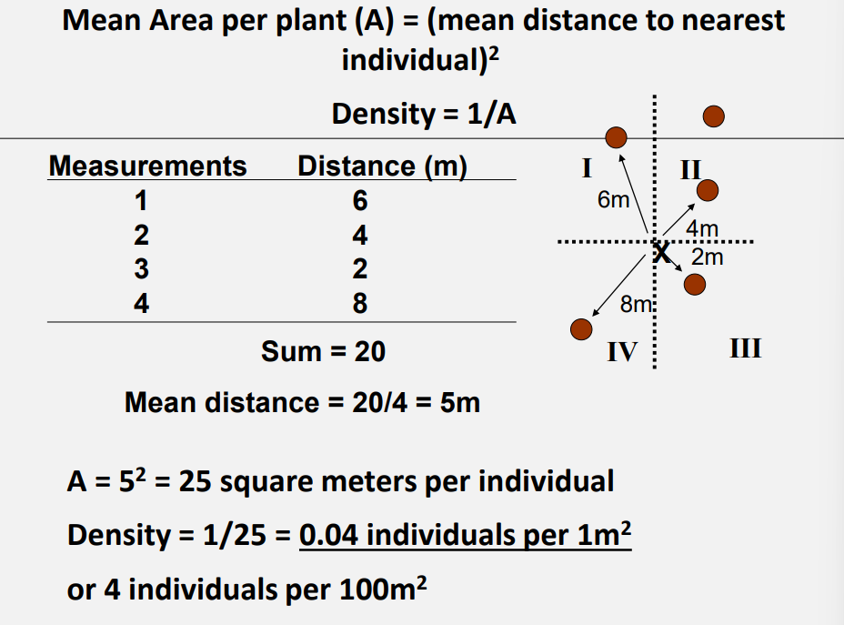 Plot-less sampling (nearest-neighbor/individual) – estimates density by measuring the distance from random points to the nearest individual (or between individuals).