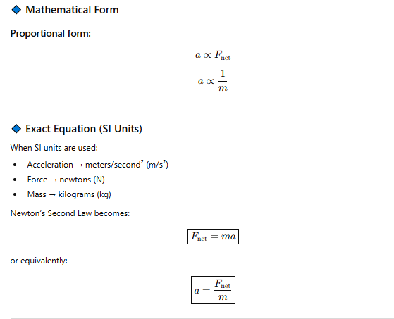 Newton’s Second Law explains how force, mass, and acceleration are related.