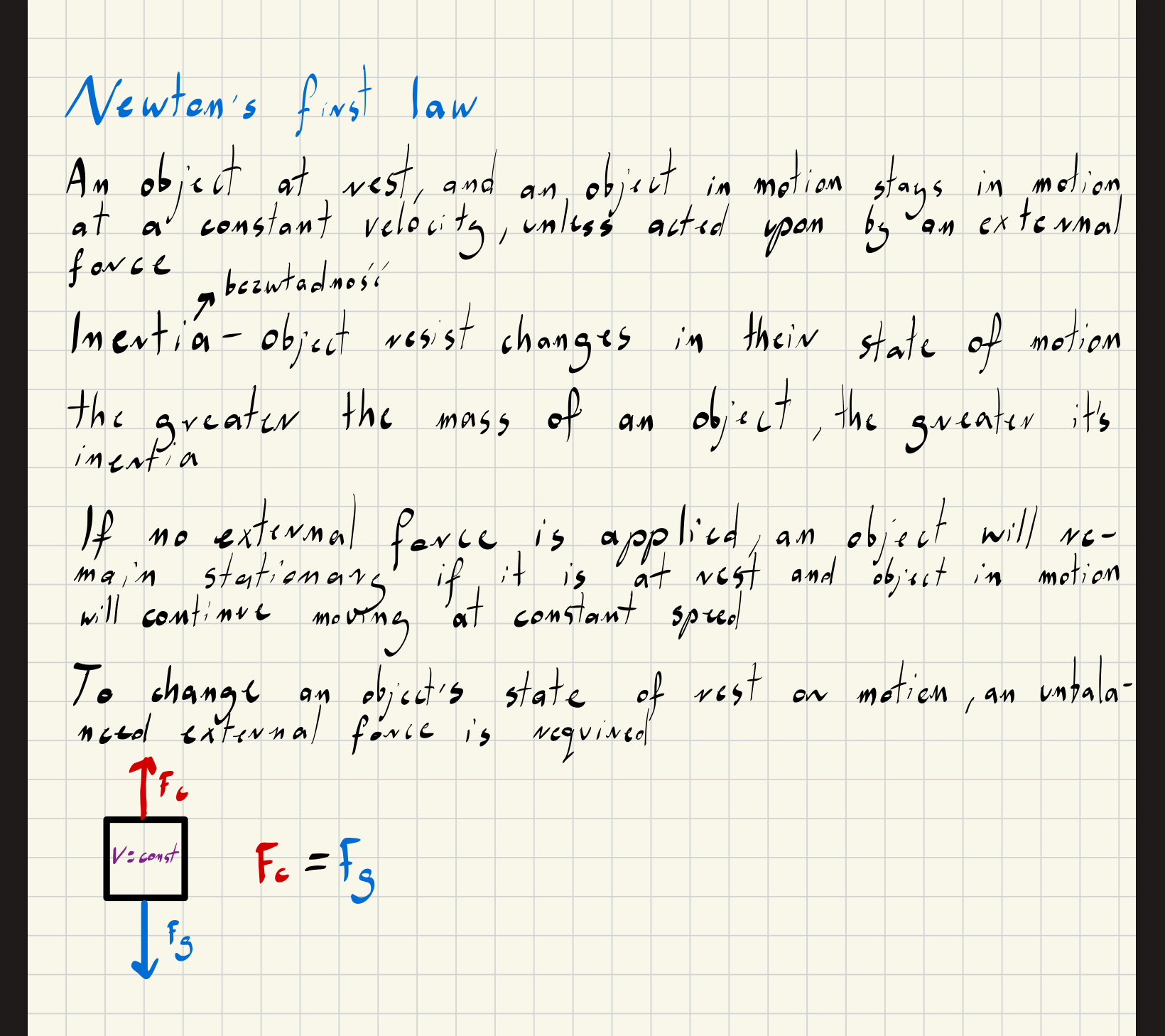 💡 "An object at rest stays at rest, and an object in motion stays in motion with the same velocity unless acted upon by an external force."