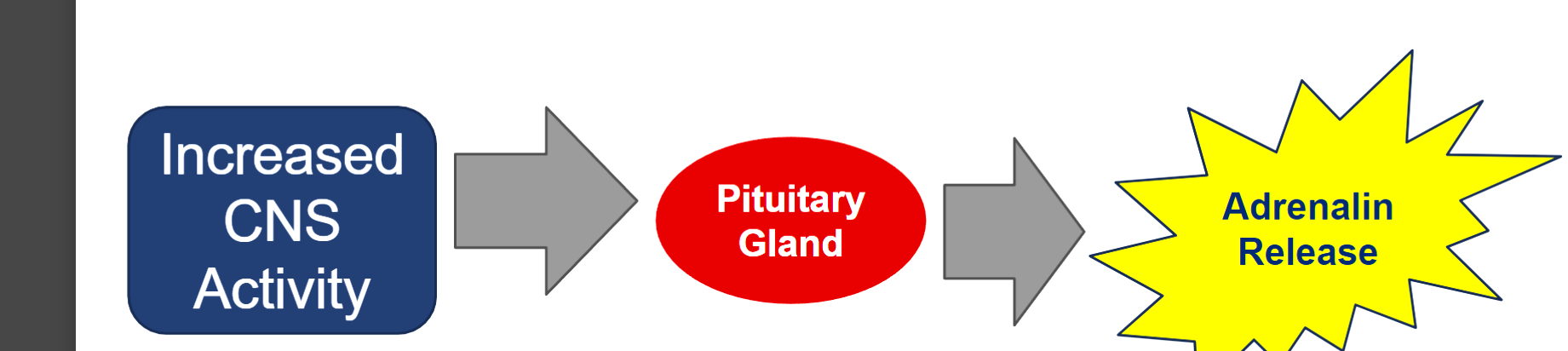 increase in central nervous system activity because your body thinks you have a problem, which releases adrenaline
