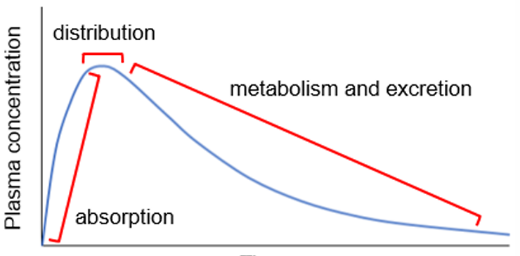 Describe the four pharmacokinetic processes: absorption, distribution, metabolism, and excretion.