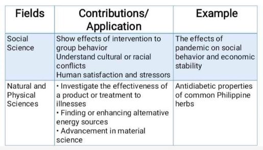 The findings of the quantitative study can influence leaders and law-makers' decisions for crafting and implementing laws for the safety and welfare of the more significant majority. For example, a community with high cases of Covid-19 positive patients is mandated by law to be under Enhanced Community Quarantine where only the most essential businesses can operate. On the other hand, cities with less or zero case will be under General Community Quarantine where some businesses, public and private offices are already allowed to operate. Using quantitative design helps us determine and better understand relationships between variables or phenomenon crucial to reducing the range of uncertainty because the mathematics (more of this in the last module) behind quantitative studies helps us make close estimates of the outcome (dependent variable) from a given condition/s (independent variable). Relationship between demand and supply, age and health, discipline and academic achievement, practice and winning at sports, depression and suicidal rates, algae population and Oxygen demand are just few examples of real-life applications of correlation studies in the past that we still apply today. Most inventions and innovations are products of quantitative studies. Before you can enjoy the uses and features of a smart phone, it took years of research to establish compliance to standards for interoperability, to find the most cost-effective raw materials, and to identify the sleekest and sturdiest design, the fastest data saving and processing power, and most marketable add-ons according to consumer needs. Indeed, mankind will dwell in the darkness of ignorance if not for the people who conducted their research before reading about it from books or manuals.